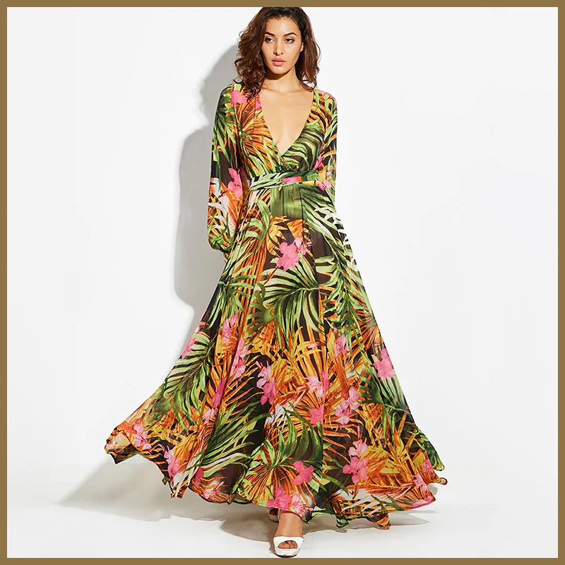 Женское платье с глубоким V-образным вырезом, длинное пляжное плать...
