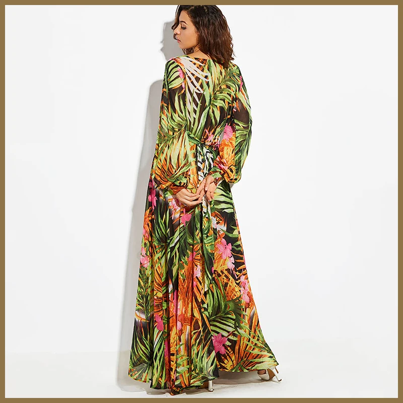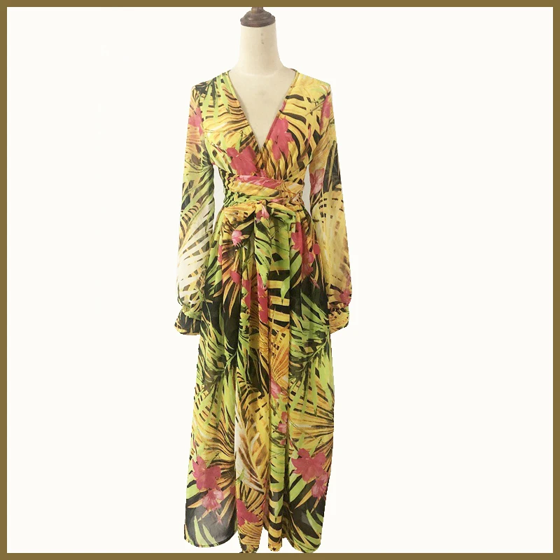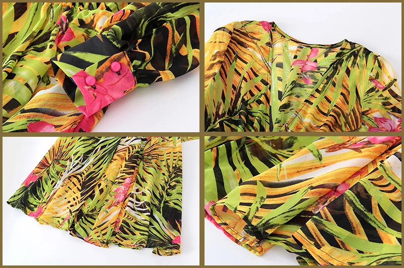 Зеленый принт тропических листьев Летняя Пляжная туника с длинными ...
