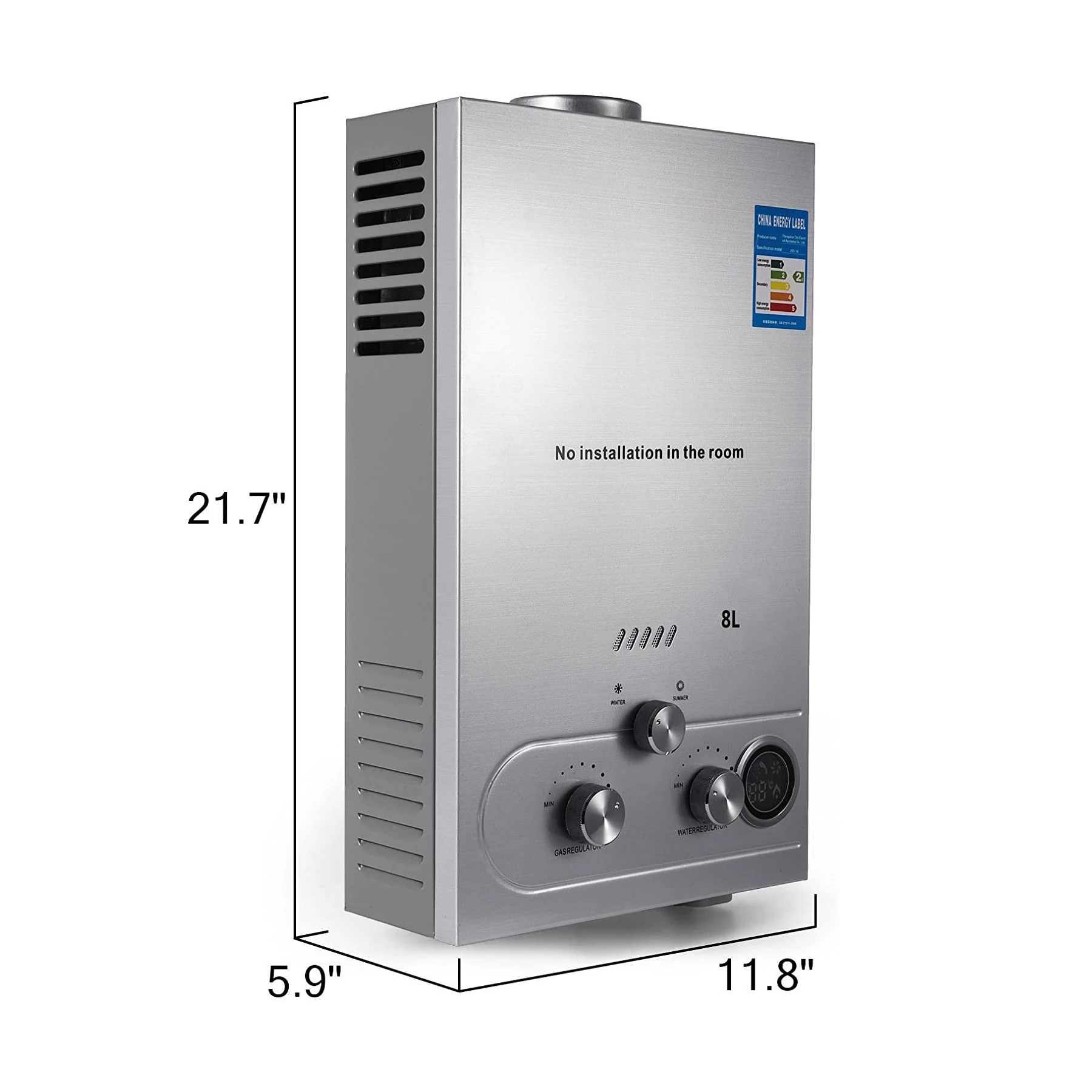 【Превосходное Качество 】-подача газа: природный газ; Прочный корпус из нержавеющей стали, высокотемпературные медные устройства для воды, обеспечивают долгосрочное использование и долговечность этого водонагревателя природного газа. Предупреждение: этот блок не будет работать с газом в бутылках или пропановым газом, он будет работать только с метановым газом!【Легкий контроль-газовый Мгновенный водонагреватель. Четкий светодиодный дисплей текущей температуры воды, поверните регулятор подачи газа и выхода воды, чтобы легко регулировать температуру горячей воды. Этот мгновенный газовый водонагреватель также может обеспечить выбор летнего/зимнего режима для экономии энергии.【Различные защиты 】-Обратите большое внимание на безопасность использования, поэтому используйте несколько методов защиты, таких как защита от перегрева, защита от низкого расхода воды и т. д. Этот водонагреватель также может начинаться при низком давлении воды, который поставляется с набором душевой головки в подарок.[Настенный дизайн]-этот Мгновенный водонагреватель, он легкий, портативный и безрезервуарный, его можно установить на стену, чтобы сэкономить место. Стандартные G 1/2 "медные соединители труб, outlet 3,54" выход выхлопной трубы дыма (не входит в комплект).【Разделяемый аппликатор 】-газовый водонагреватель, быстро нагревается, идеально подходит для принятия душа, очистки кухни и т. д. он обеспечивает вам постоянную горячую воду, особенно зимой или в холодных местах. Для вашей безопасности, вы можете купаться в ванной комнате, установить его на кухне (места с большой вентиляцией) и избежать риска утечки во время ванны.