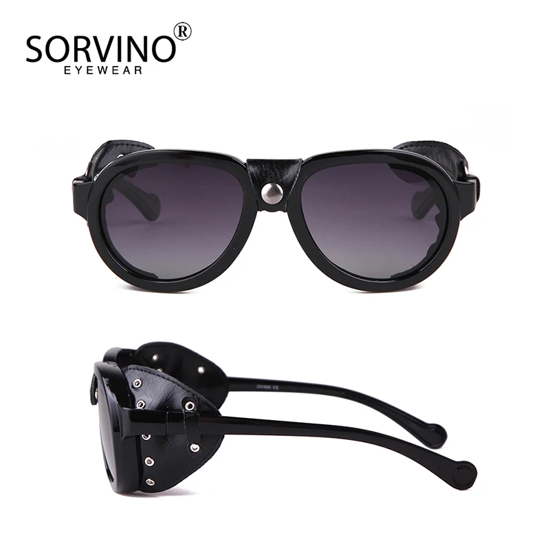 Мужские винтажные очки в стиле стимпанк SORVINO, готические солнцезащитные очки с поляризационными стеклами в стиле ретро, кожа с боковыми оттенками, солнцезащитные очки javascript:
