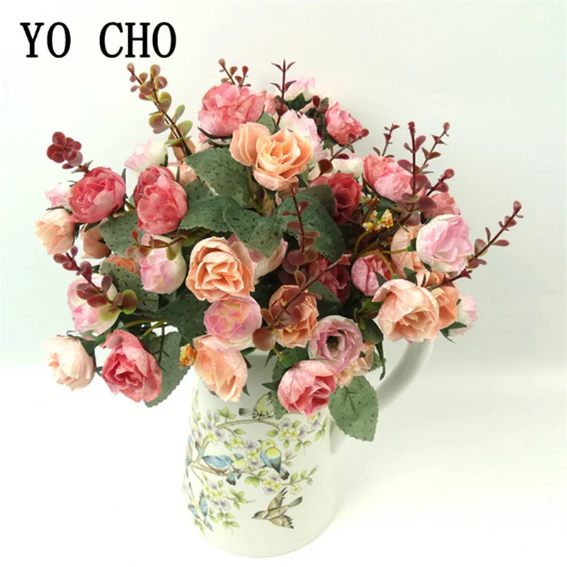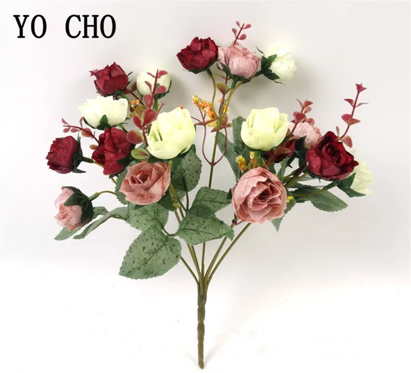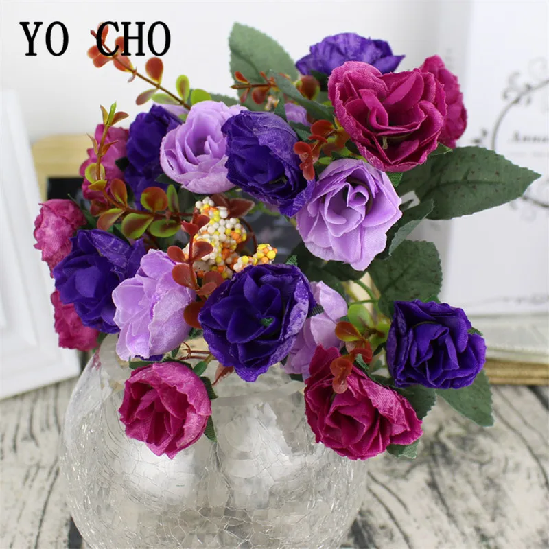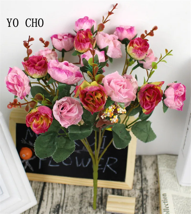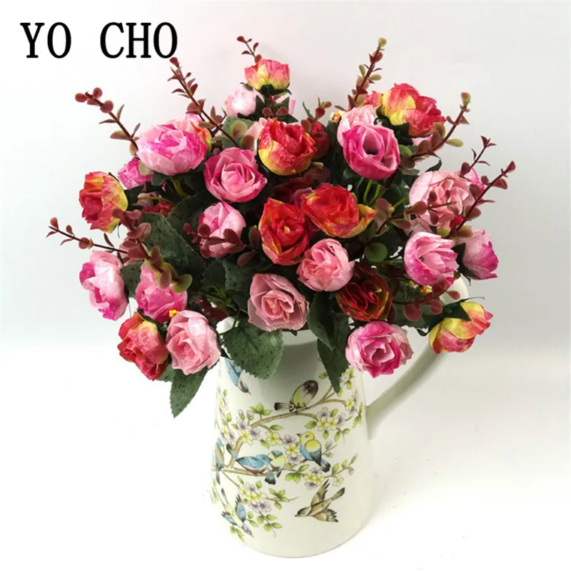 YO CHO 21HeadS Шелковая Роза искусственная цветок для украшения дома алмазные Сияющие розы искусственный цветок для свадьбы декор для вечеринки