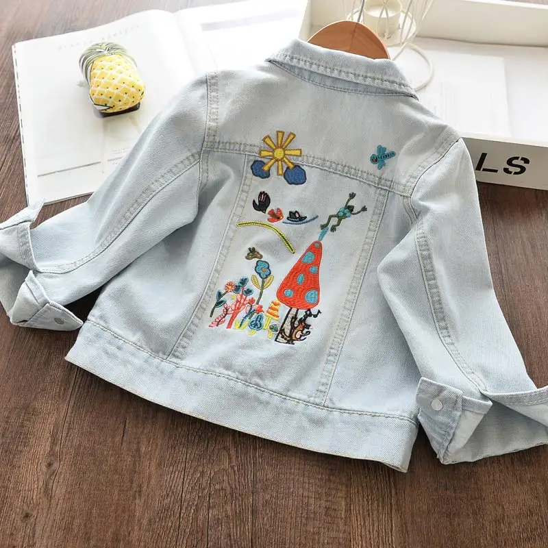 Джинсовая куртка для девочек 2-10 лет, с мультяшным принтом