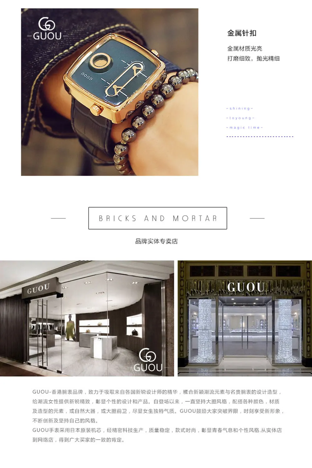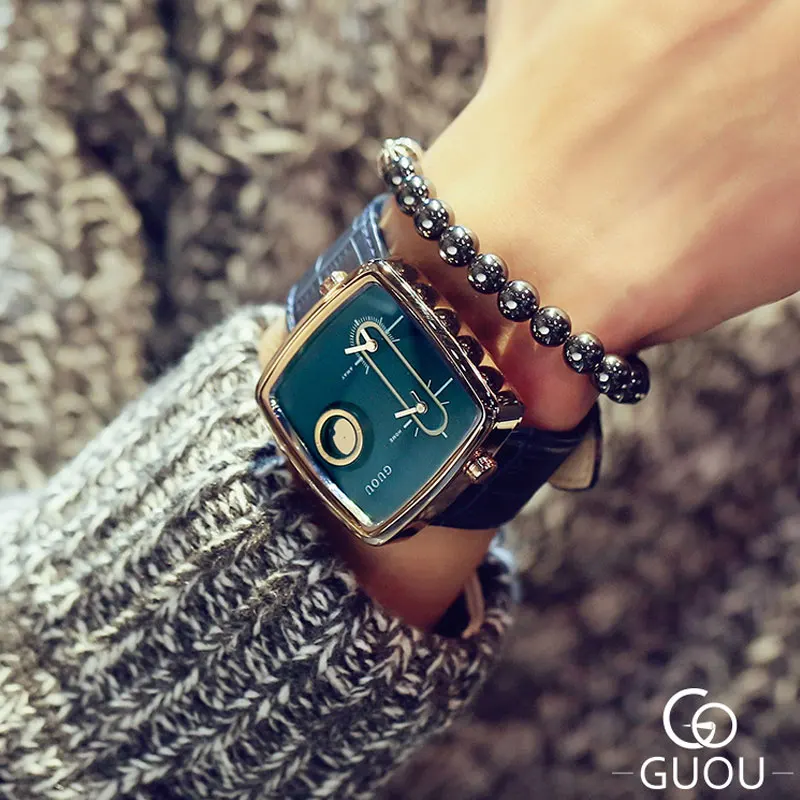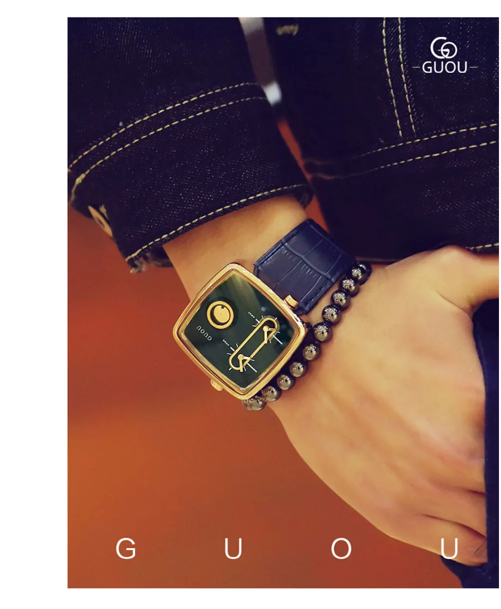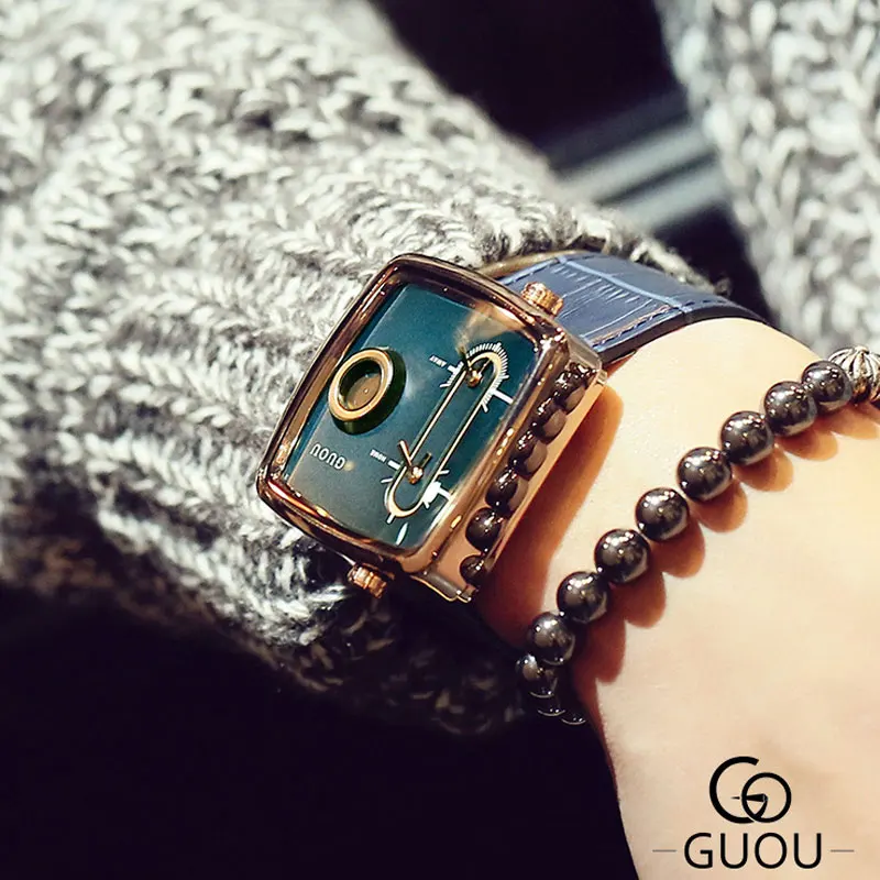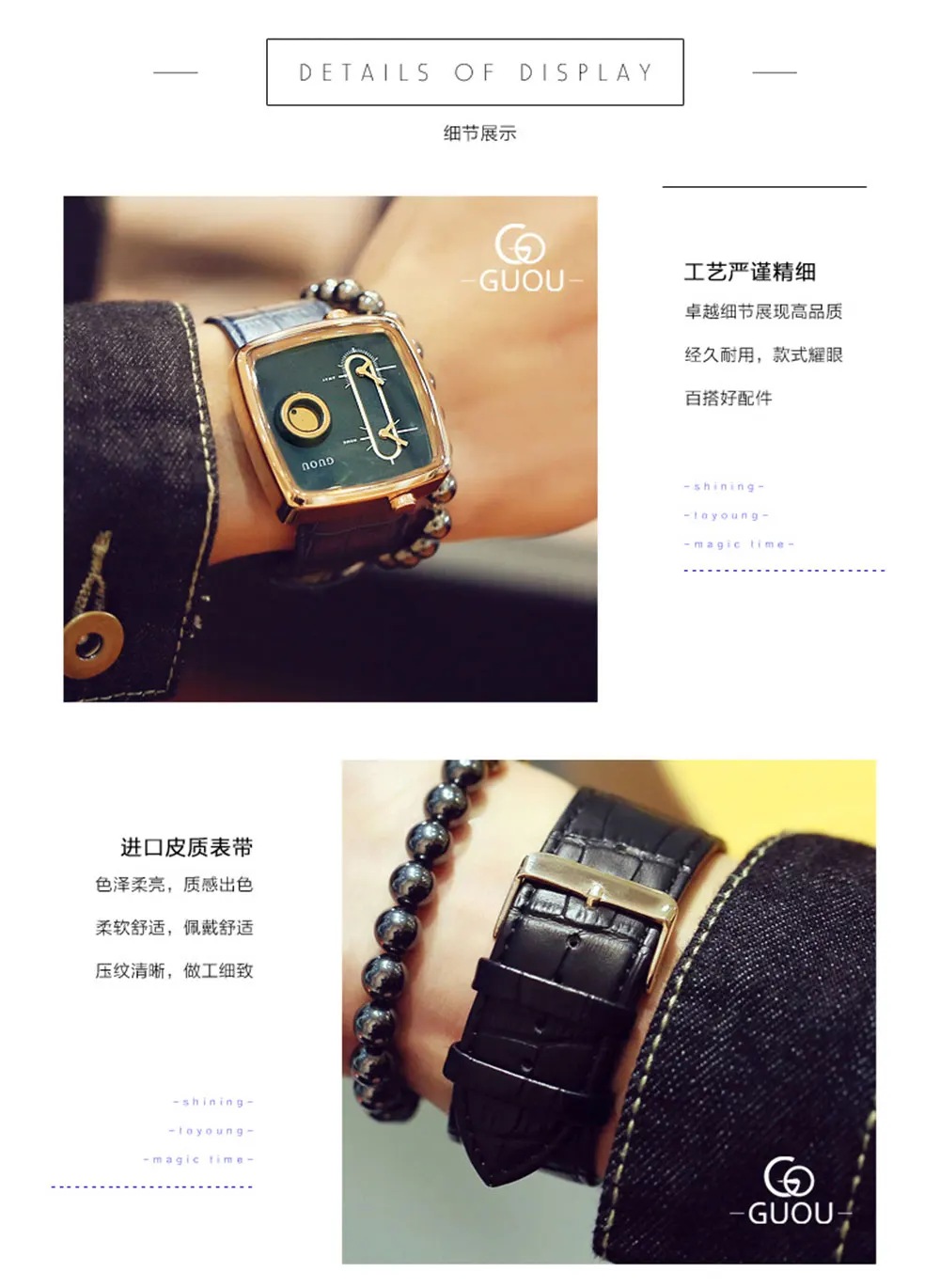 Часы наручные Guou мужские с двойным кварцевым механизмом, модные брендовые Роскошные с квадратным циферблатом командира из воловьей кожи, популярный товар