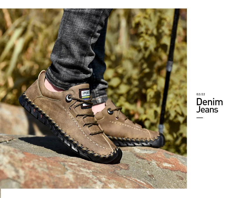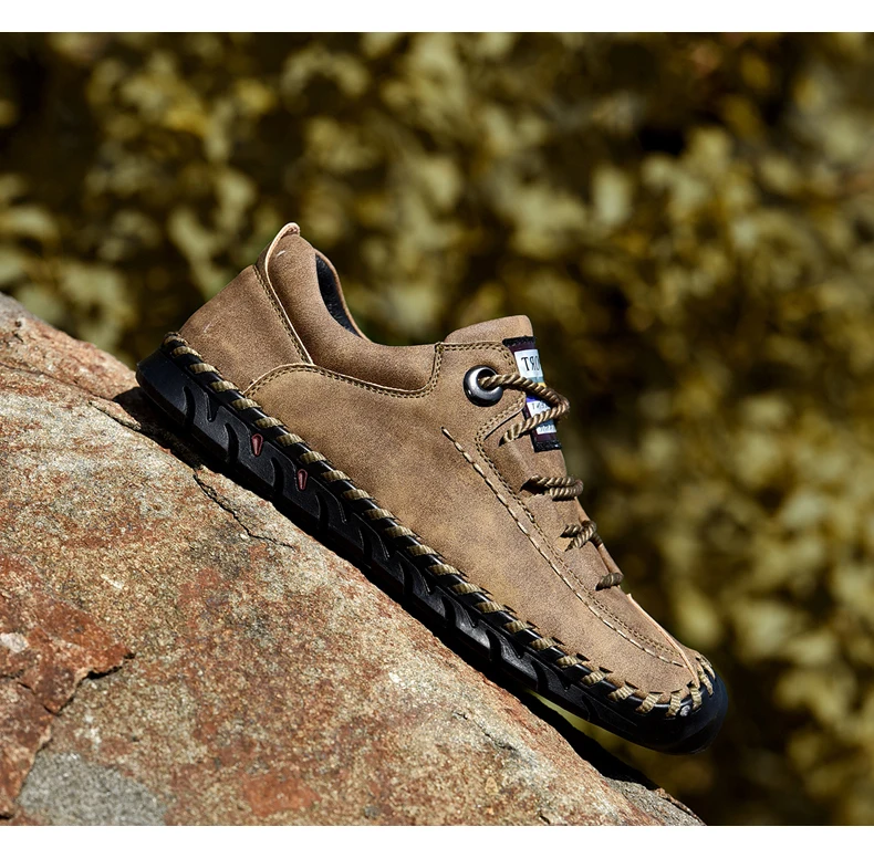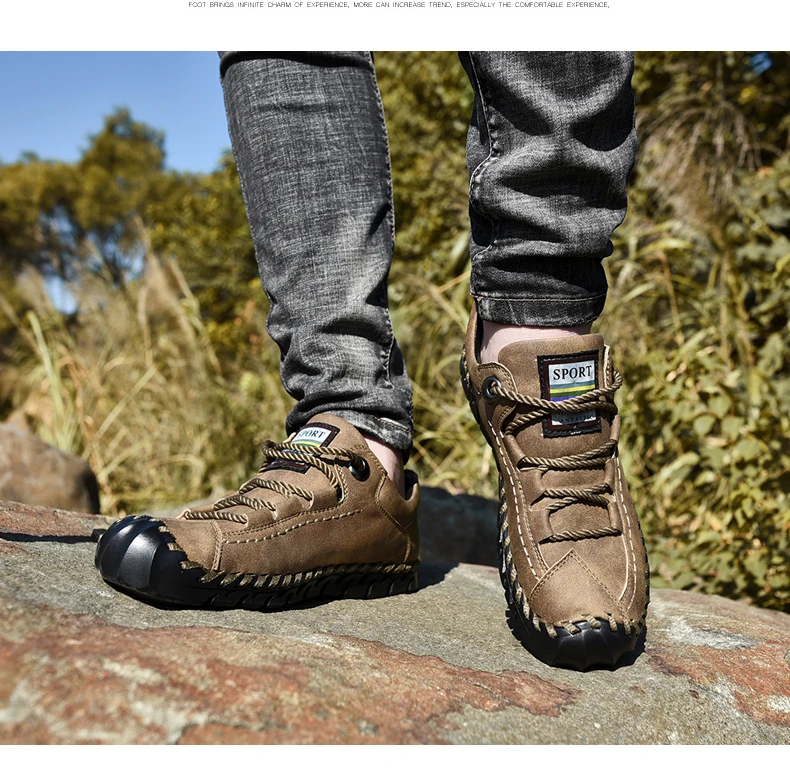 Мужские кожаные кроссовки, дышащие легкие Мокасины, ручная работа, ...