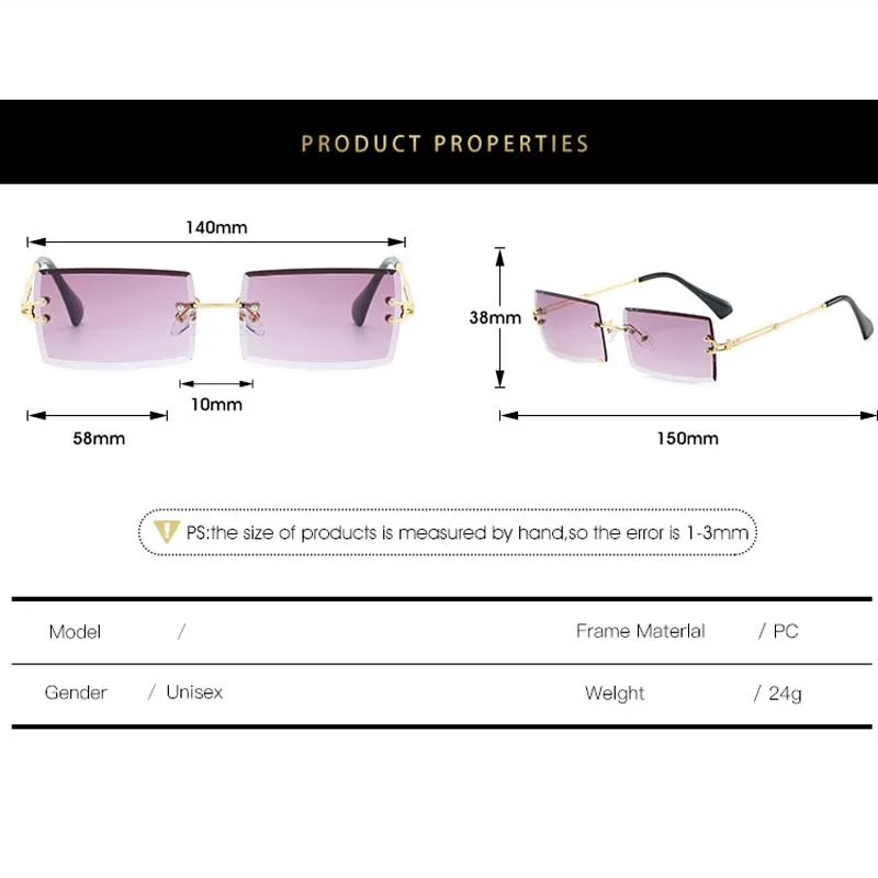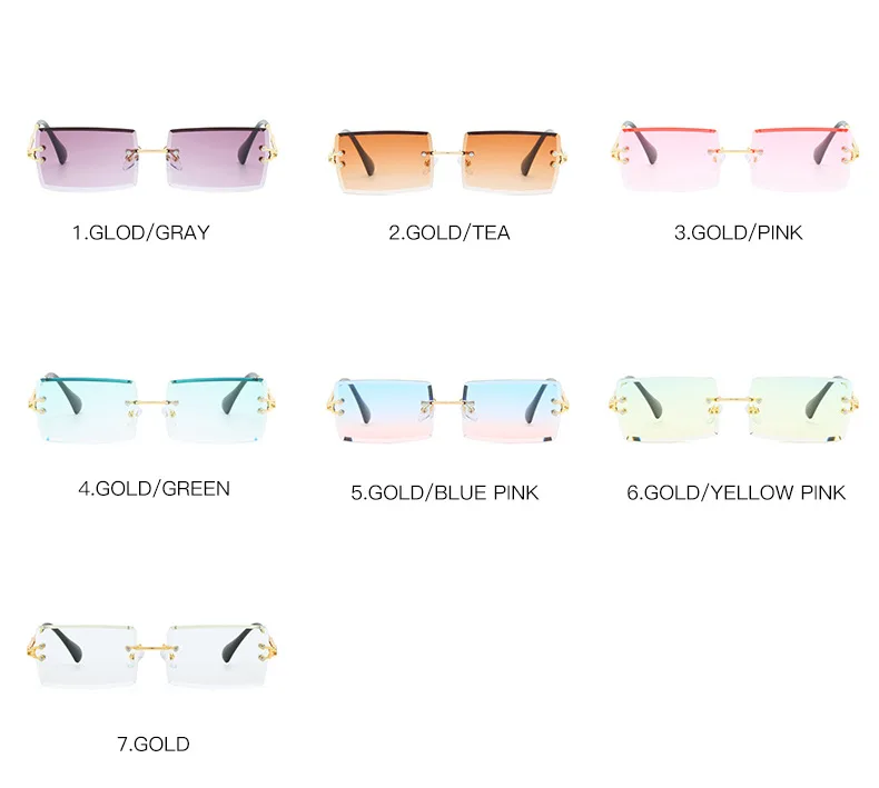 Очки солнцезащитные женские прямоугольные без оправы, роскошные брендовые модные маленькие квадратные солнечные очки uv400, лето 2019