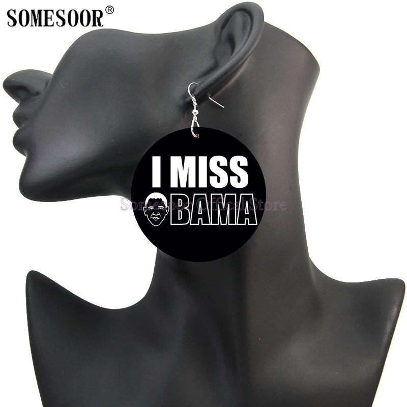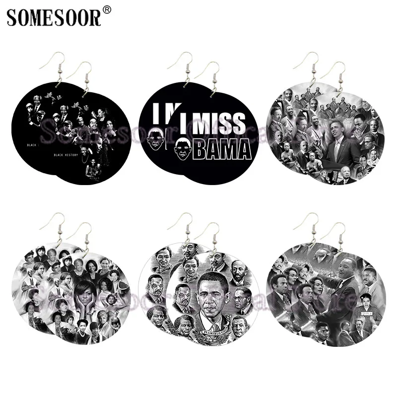 SOMESOOR напечатанные черные истории Heros африканские деревянные висячие серьги президент Обама Мишель леди известные Повелители дизайн для женщин
