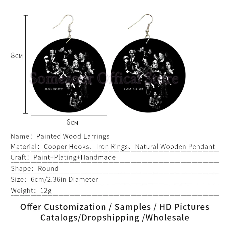 SOMESOOR Black History Heros афроамериканские деревянные серьги-под...