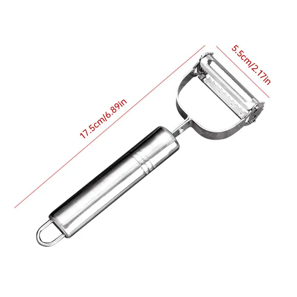 * 1. Материал: нержавеющая сталь* 2. Размер (прибл.): 15*4*3 см* 3. Цвет: серебристый Особенности:* 1. Изготовлен из нержавеющей стали, прочный для использования.* 2. 2 в 1 дизайн для двух функций, это может быть Овощечистка и Терка.* 3. Легко и быстро для резки или решетки, экономя много времени.* 4. Лезвия очень острые из высококачественной нержавеющей стали.* 5. Идеальный помощник для вас на кухне. Упаковочный лист:Овощечистка * 1