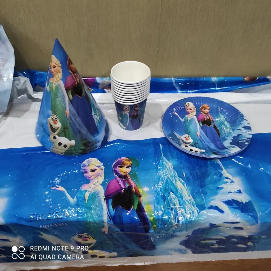 Наборы одноразовых столовых приборов с голубыми мультяшными персонажами для вечерние Холодное сердце, бумажные тарелки для детей, товары для дня рождения, декор вечерние НКИ