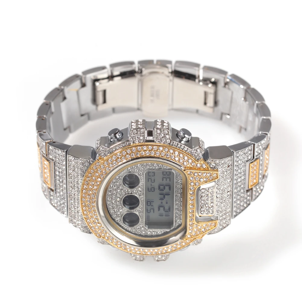 Мужские кварцевые наручные часы в стиле хип-хоп, Модные Роскошные Кварцевые квадратные деловые часы из нержавеющей стали, стразы