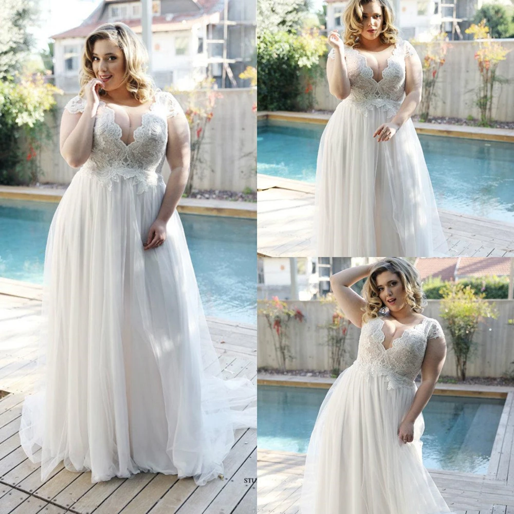 Свадебные платья размера плюс с v-образным вырезом, коротким рукавом, кружевной топ, тюль, Vestido De Novia, свадебные платья длиной до пола, 2020, элегантные