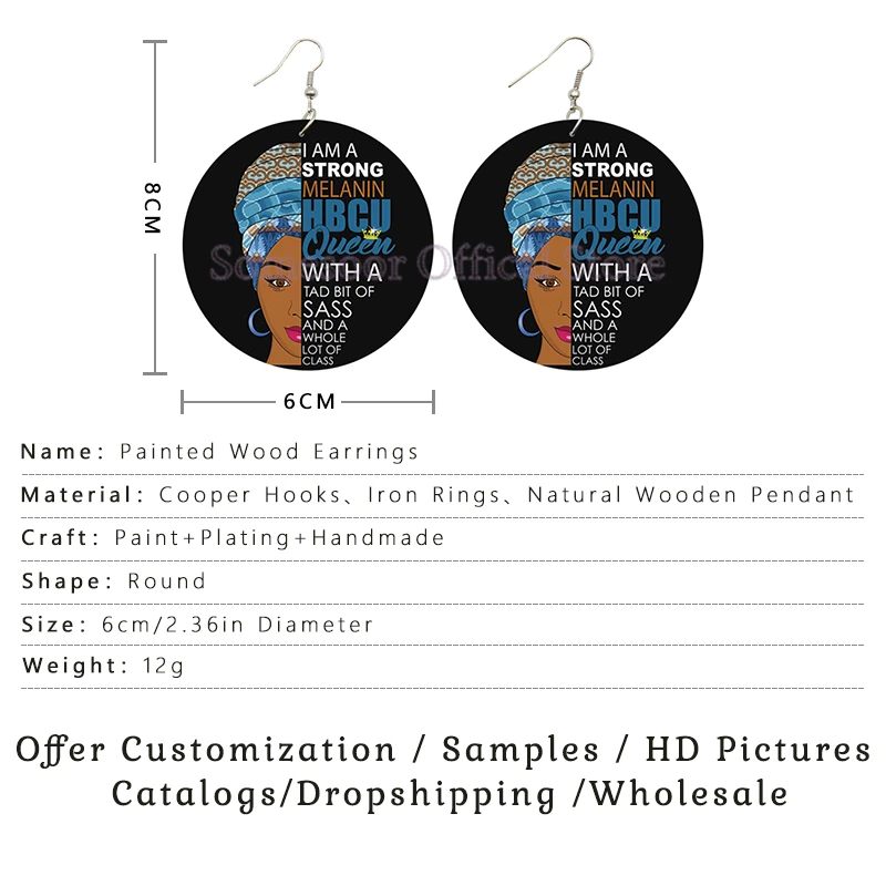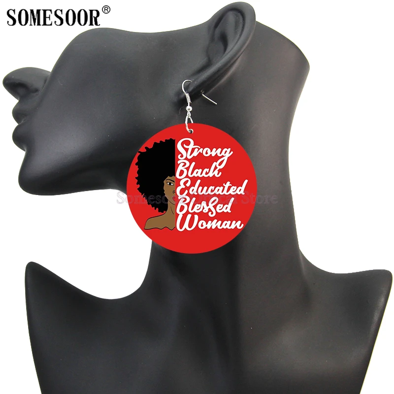 SOMESOOR напечатанные головные повязки меланин HBCU Queen африканские деревянные висячие серьги 5 звезд черная история женские дизайнерские подарки