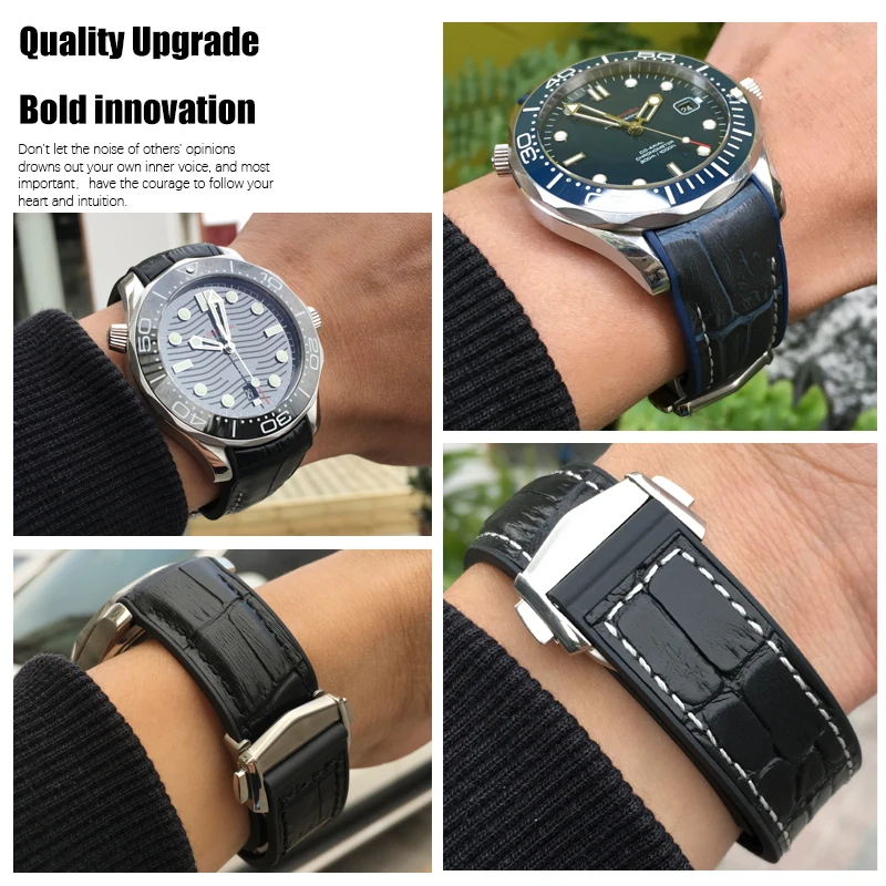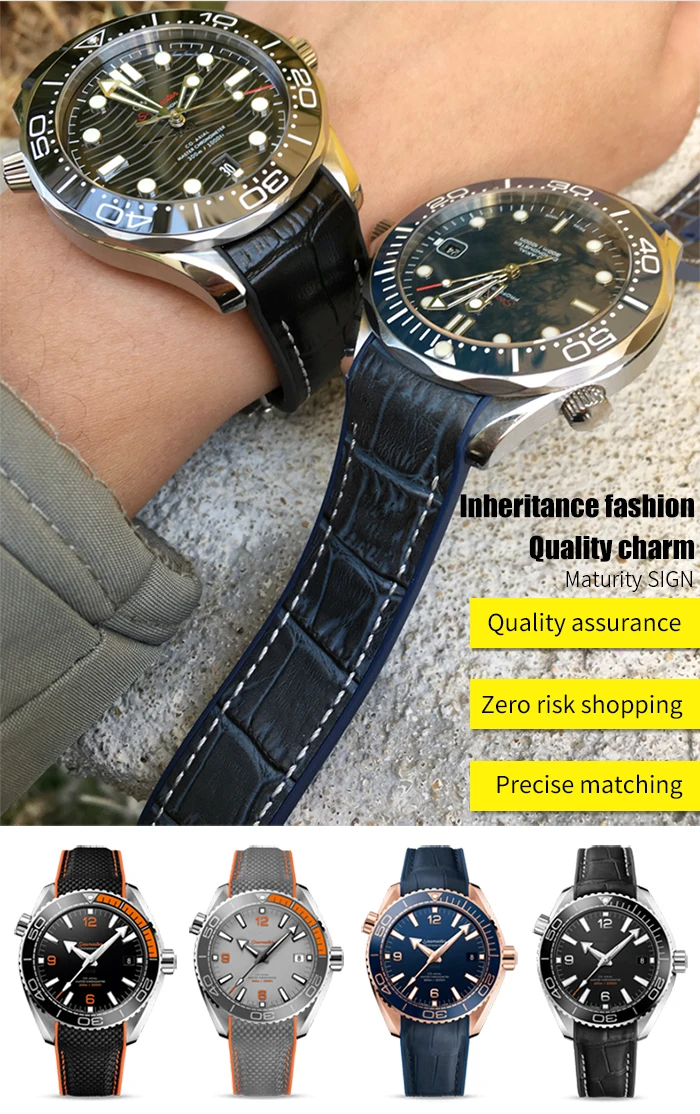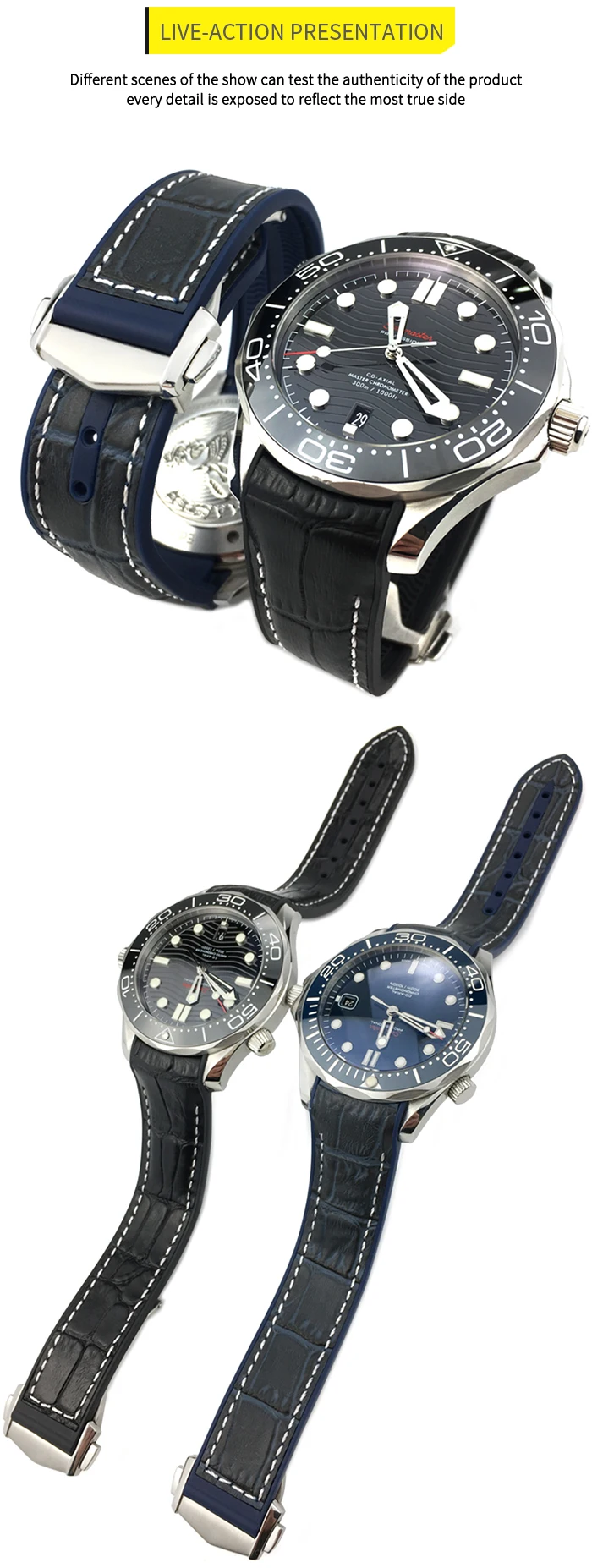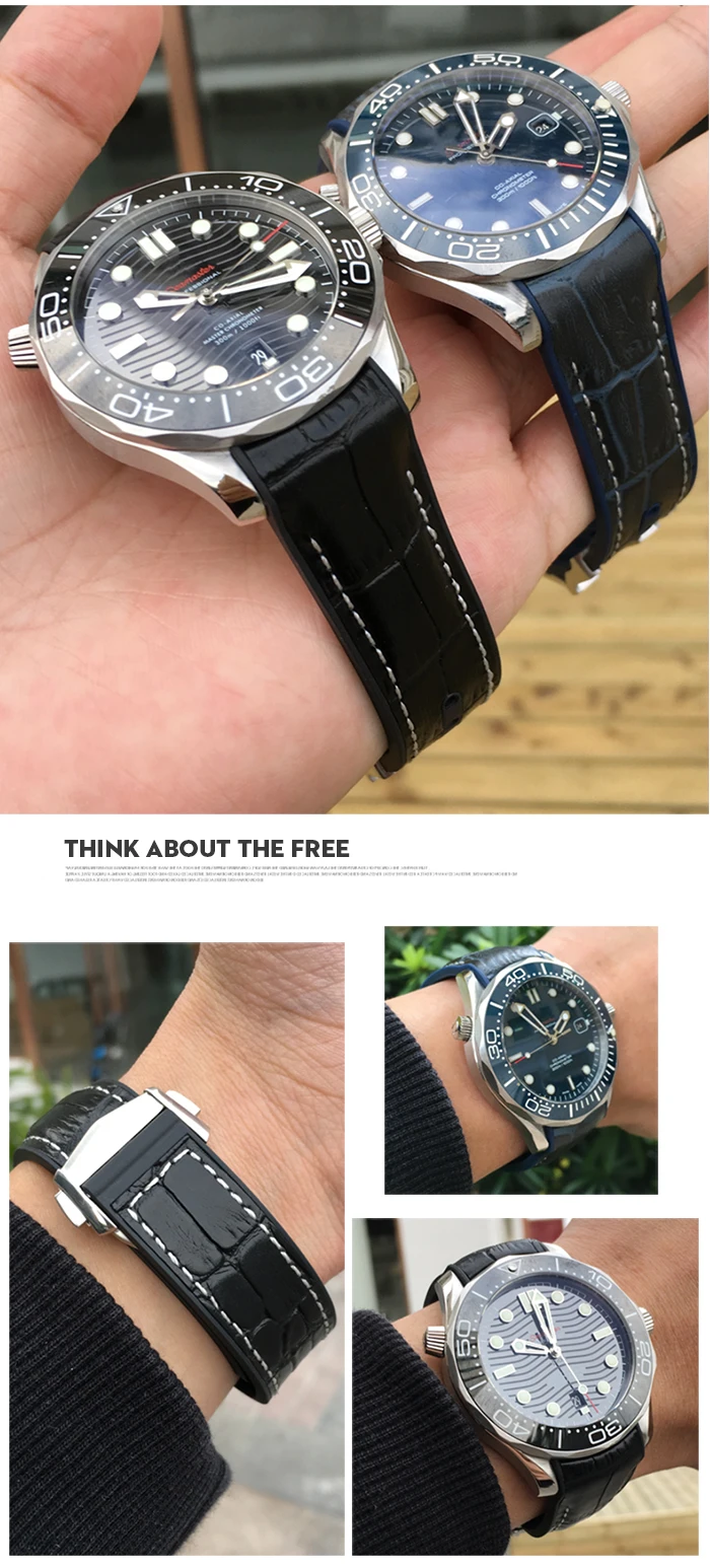 Кожаный ремешок для часов, черный браслет для часов Omega Seamaster...
