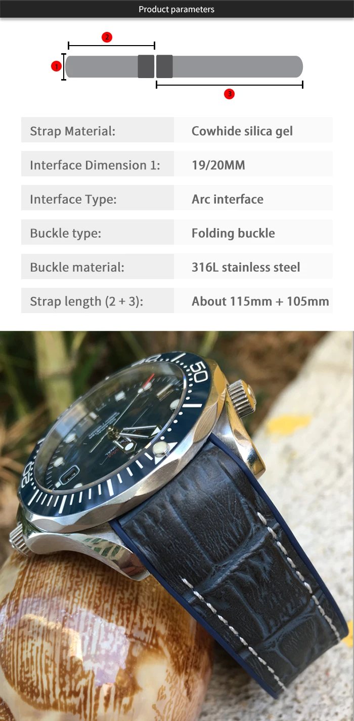 Ремешок резиновый Waterpoof со складной пряжкой для часов Longines ...