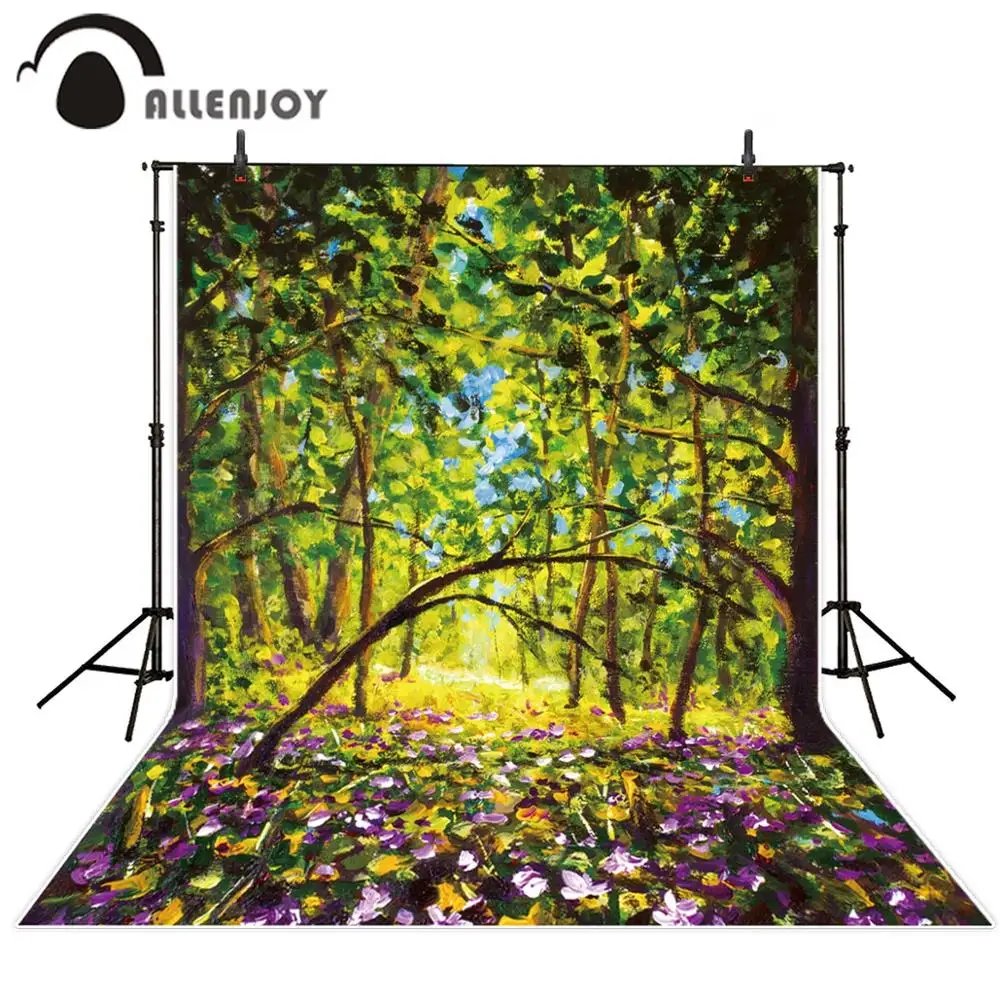 Allenjoy весенний фон зеленый лес Акварельная Живопись Природа сцена дети семья фото фон фотозоны полиэстер