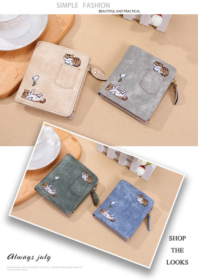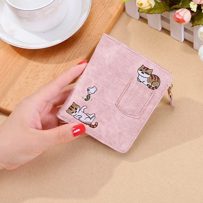 Роскошный кошелек с вышивкой в виде кошки, женский кошелек, карман для монет, милые кожаные женские кошельки, кошелек для денег, держатель для карт, клатч для девушек, 2022