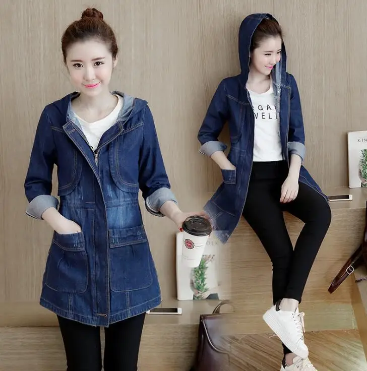 Куртка женская джинсовая, с капюшоном, на молнии, свободная, 3XL, весна-осень, размера плюс