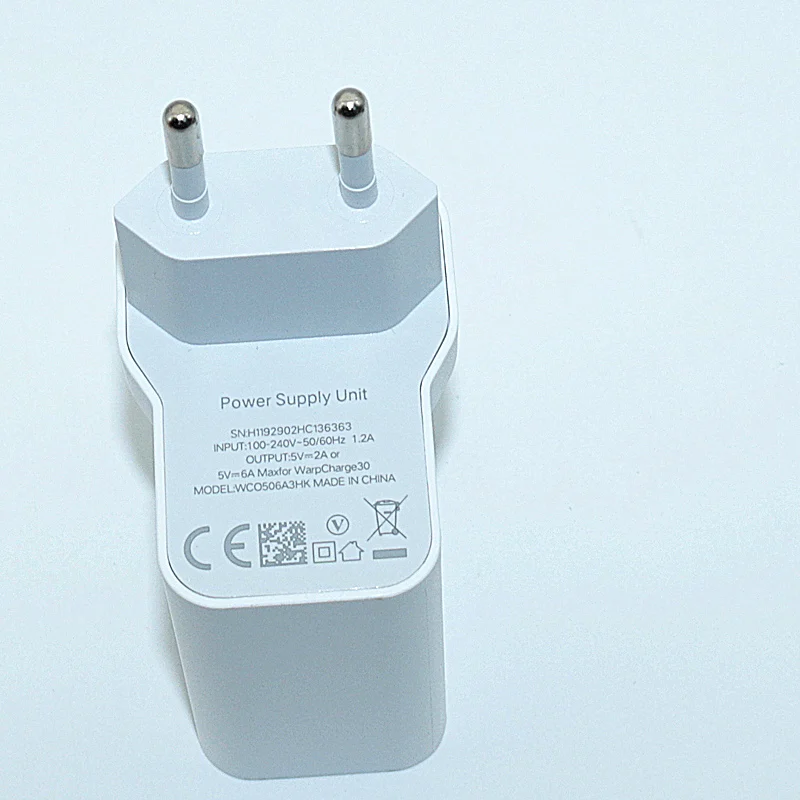 Технические характеристики:Материал ---- ПКРазмеры:ЕС: 52*30*70 мм (90 г) Пожалуйста, обратите внимание: если вам нужно зарядное устройство США, пожалуйста, оставьте сообщение под заказом при оплате или свяжитесь с нашим персоналом.США: 52*31*52 мм (90 г) Вход:100-240V ~ 50/60Hz 1.2A Выход:5V = 2A/5В = 6A max Совместимость:Warp Charge 30: OnePlus 7 ProБыстрая зарядка: OnePlus 3 / 3T / 5 / 5T / 6 / 6T / 7 и другие OnePlus Warp Charge 30 адаптер питания-никогда не замедляет работуМы специально разработали наш адаптер питания OnePlus Warp Charge 30, чтобы быть удивительно умным. Интегральные схемы встроены в сам адаптер, поэтому тепло рассеивается, прежде чем он когда-либо достигнет вашего телефона.Это означает более быструю, безопасную и прохладную зарядку, которая никогда не замедляется-даже во время просмотра, игр или делать что-то еще, что вам нравится на вашем устройстве OnePlus.