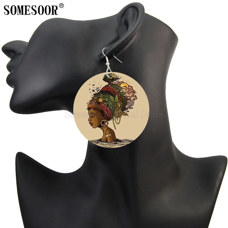 SOMESOOR афро меланин натуральные волосы женские деревянные серьги-...