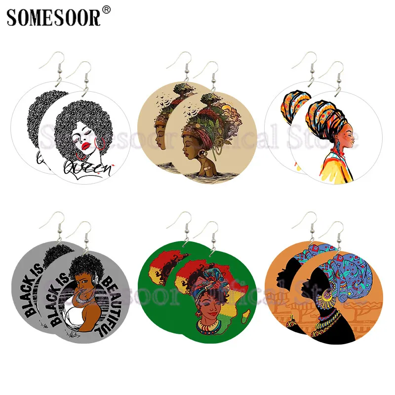 Деревянные серьги-подвески SOMESOOR, с изображением меланина, женск...