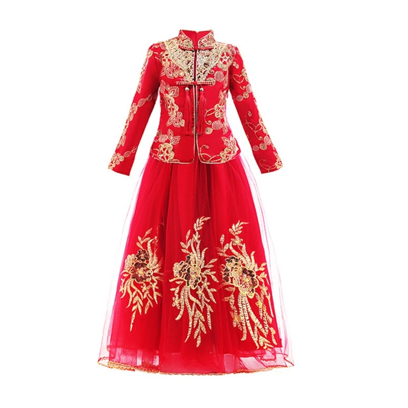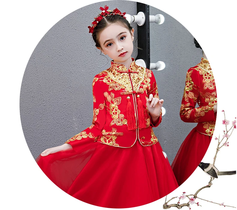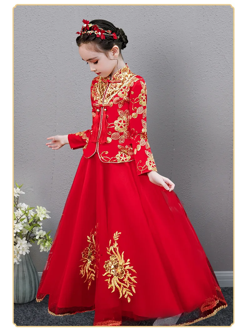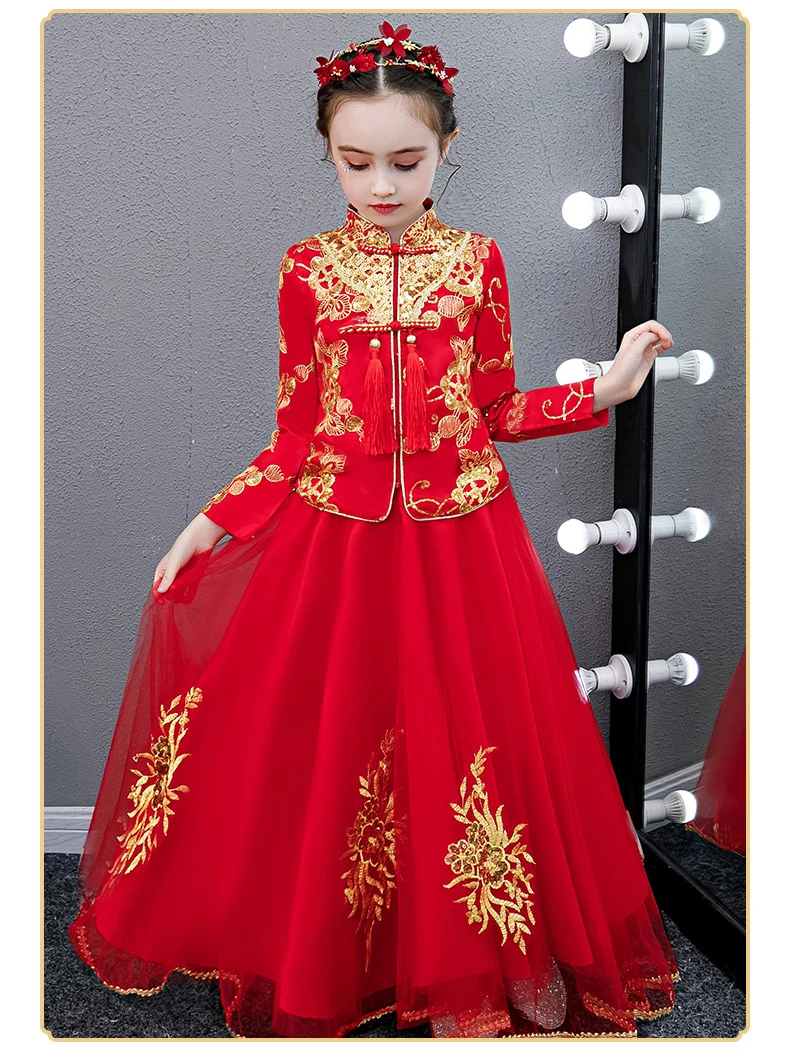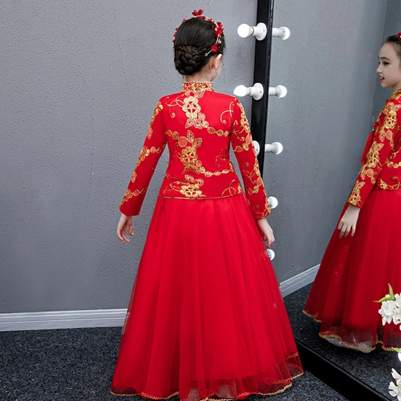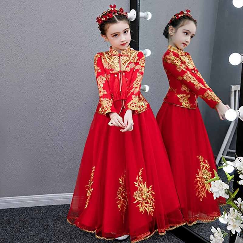 Новогоднее платье для девочек; Вечерние платья принцессы с красивой кружевной вышивкой; Платье принцессы для танцев; Платье в китайском стиле