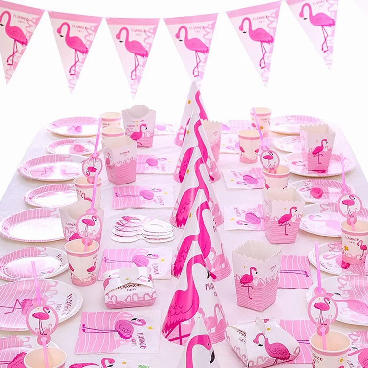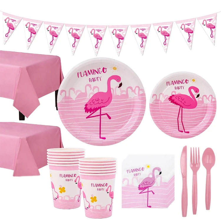 Одноразовая посуда YORIWOO, гавайский фламинго, украшения для детского дня рождения, для девочек, тропические украшения для вечеринки
