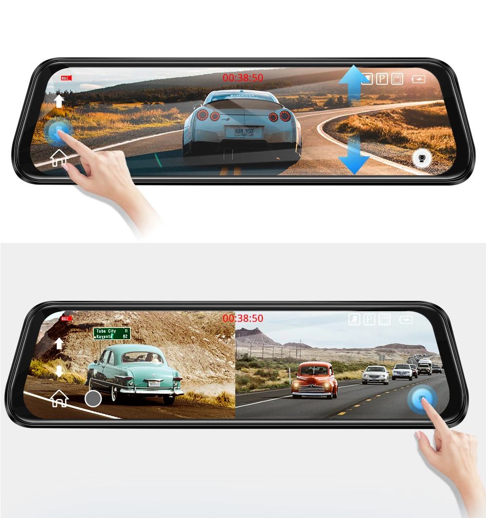 В AZDOME Mirror Dash Cam используется 10-дюймовый сенсорный экран с антибликовым покрытием IPS и стеклом 2.5D. Он поддерживает запись с передней и задней камеры, что позволяет переключаться между передним и задним обзором или одновременно контролировать два объектива для просмотра больше информации о дорожном движении и более безопасное вождение / движение задним ходом.Простой интерфейс с быстрым временем отклика дает вам наилучшие впечатления.
