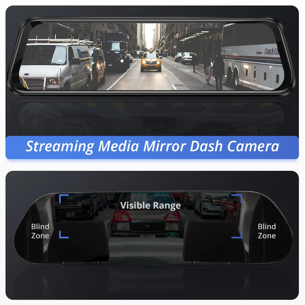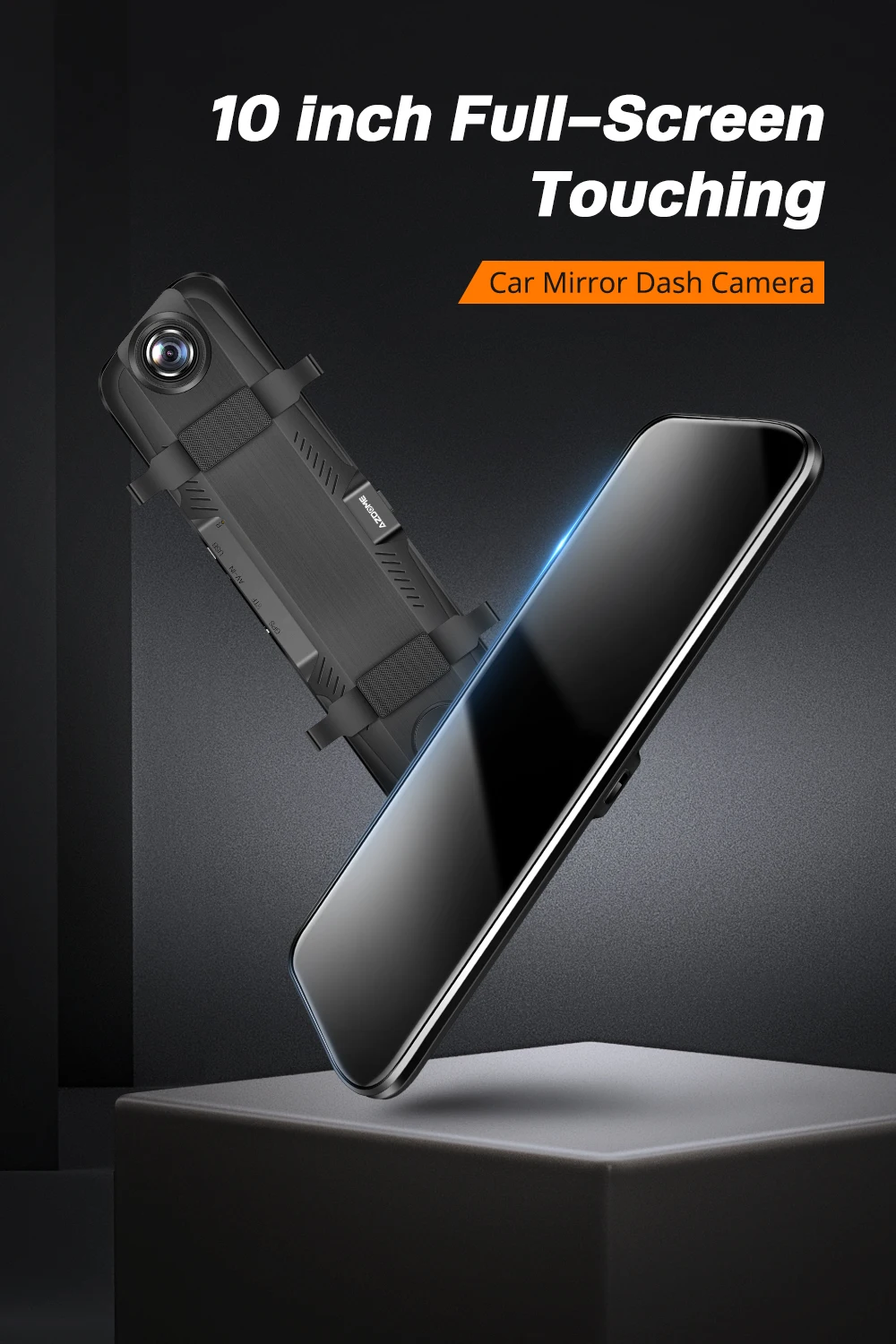AZDOME Mirror Dash Cam Front and Rear Dual Dash Camera for Cars, 10" Full Touch Screen Supporting 170° Wide View Angle, 1296P Enhanced Night Vision Backup Camera, G-Sensors, Parking Assistance