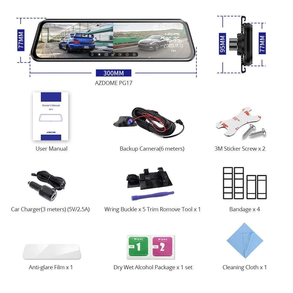 AZDOME Mirror Dash Cam улучшает разрешение резервной камеры до 1296p, гарантируя, что двойная камера может четко записывать ваше вождение, регистрировать и записывать номерные знаки, дорожные знаки и столкновения, а также обеспечивать вам всестороннюю защиту.