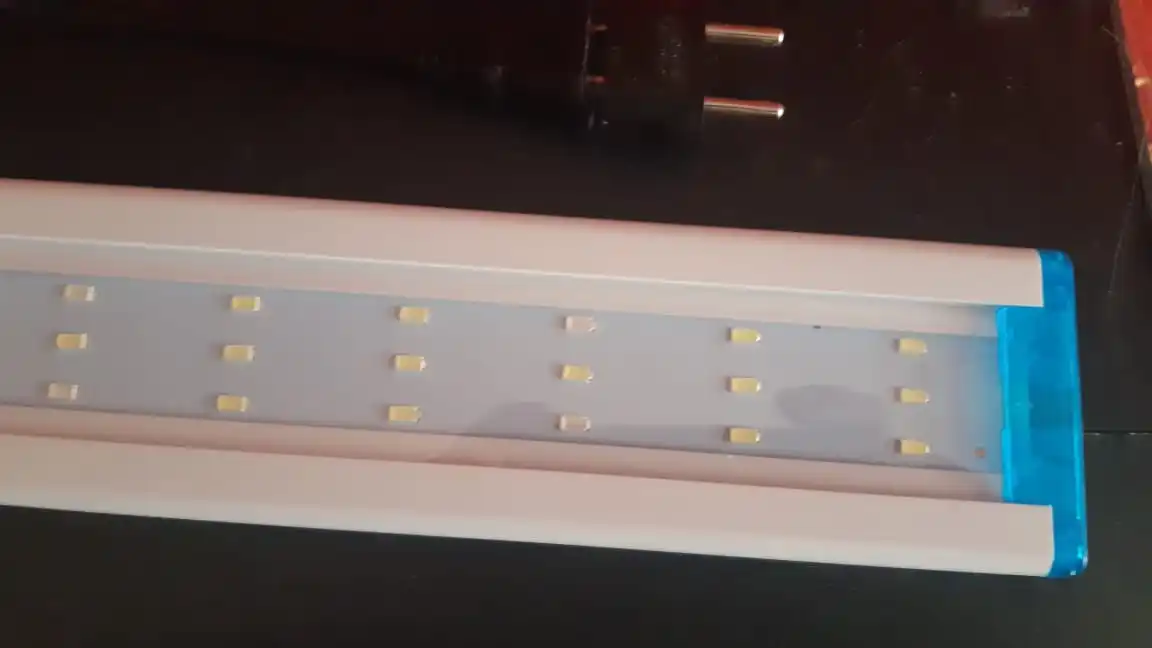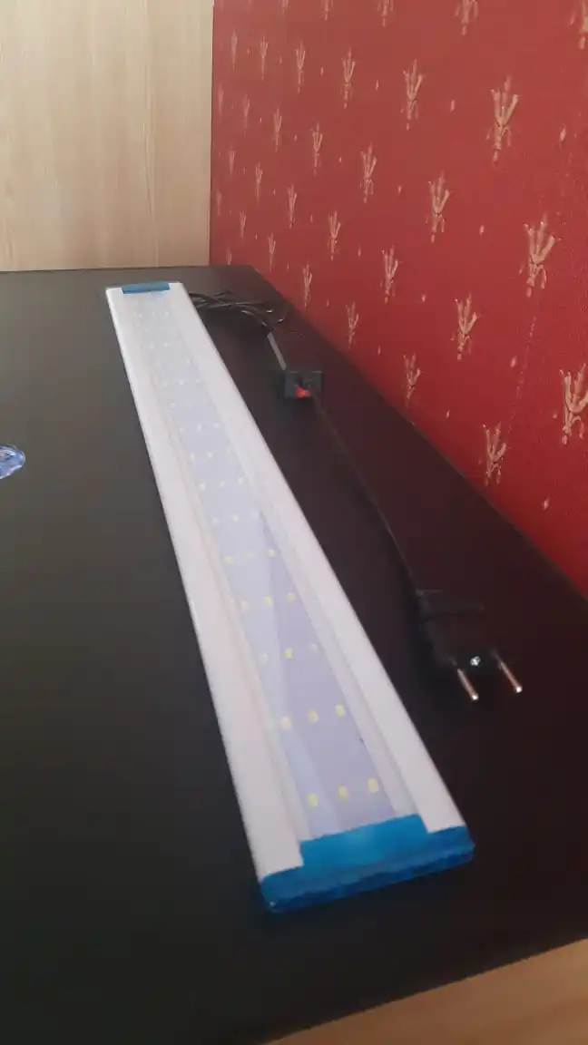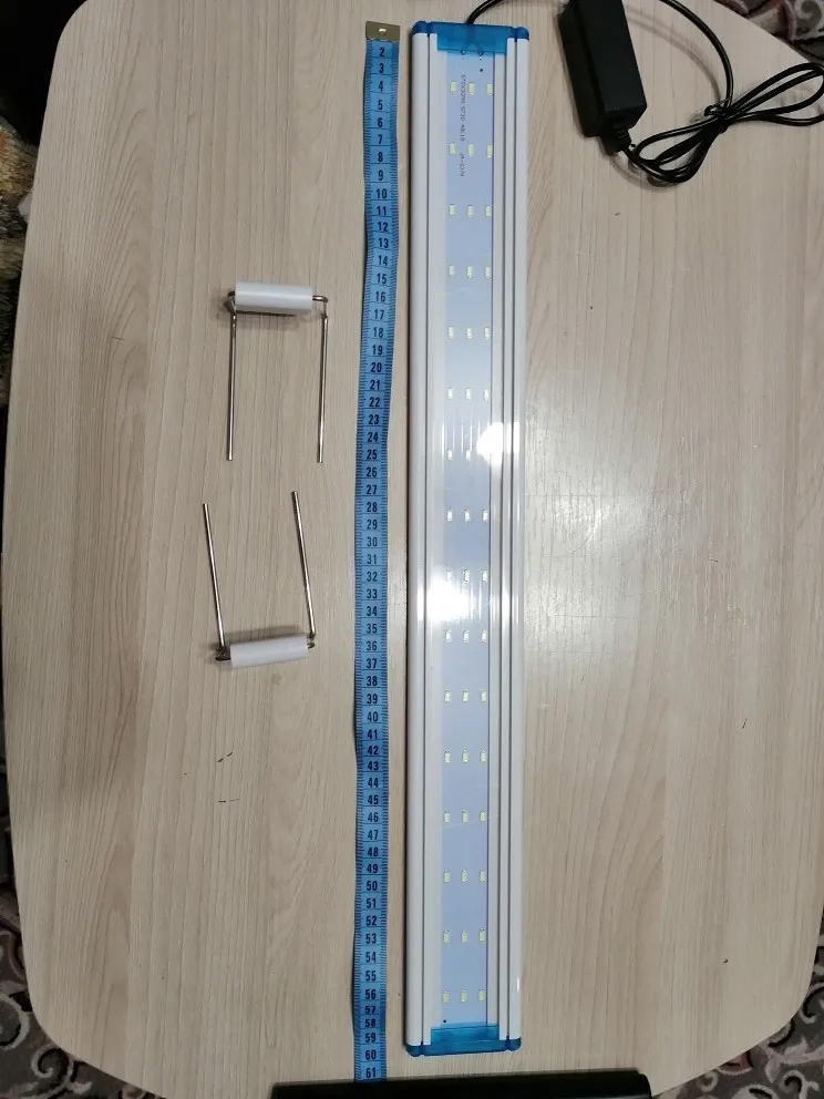 Топ! Доставлено всего за 2 недели. Очень хорошо упакован. Кнопка включения/выключения Очень красивое белое освещение, выделяющее рыбу и растения. Я люблю эти светодиоды!