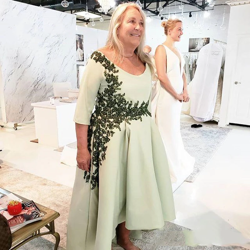 Кружева мятного, зеленого цвета атласный, высокий, низкий мать невесты платье размера плюс половина рукава совок шеи вечернее выпускное свадебное платье