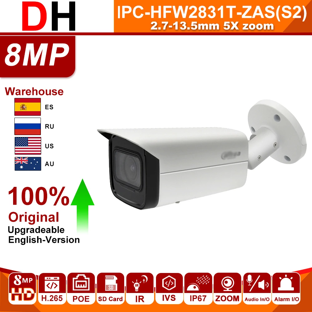 Оригинал Dahua IP камера 8MP IPC-HFW2831T-ZAS-S2 4K 5X зум Камера Starlight POE слот для sd-карты Аудио Сигнализация H.265 + 60 м IR IVS IP67
