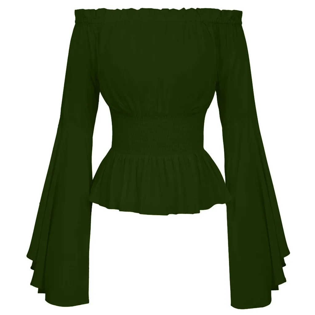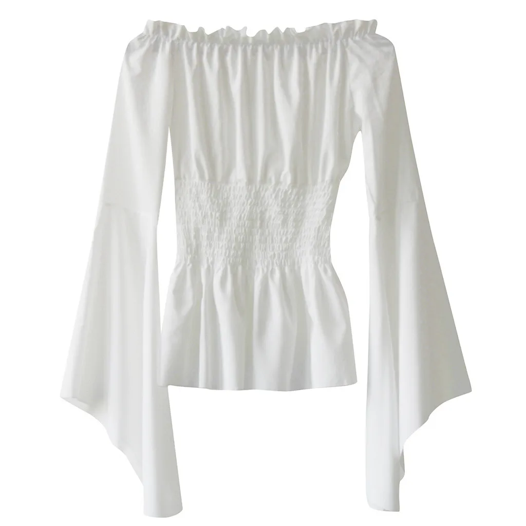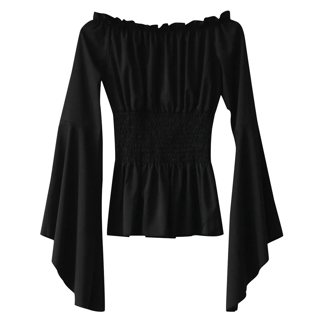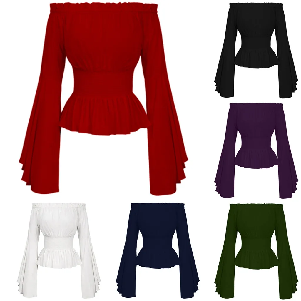 Блузка женская в стиле эпохи Возрождения, рубашка с открытыми плеча...