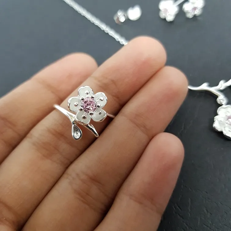 Ювелирный Комплект из колье, серёг и кольца, серебристого цвета