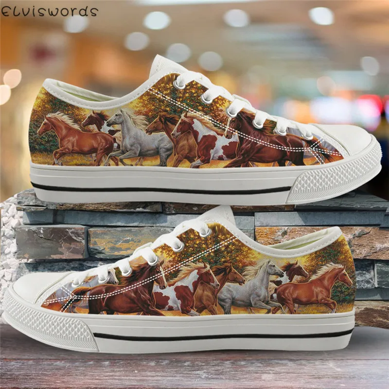 Кеды ELVISWORDS женские классические, Вулканизированная подошва, плоская подошва, принт Crazy Horse, 3D Животные, удобная обувь для молодых девушек