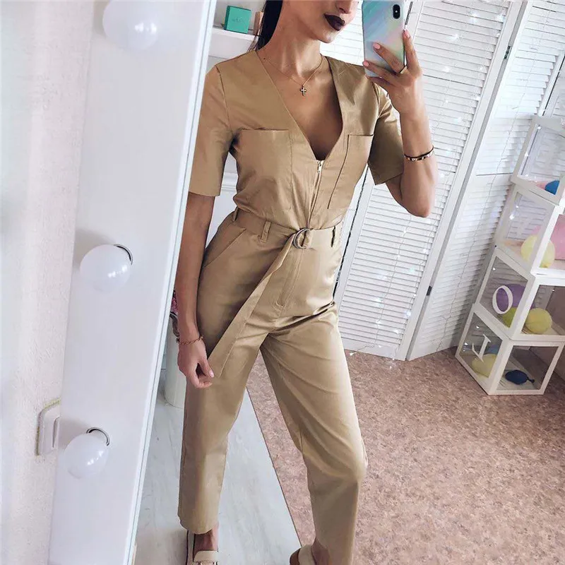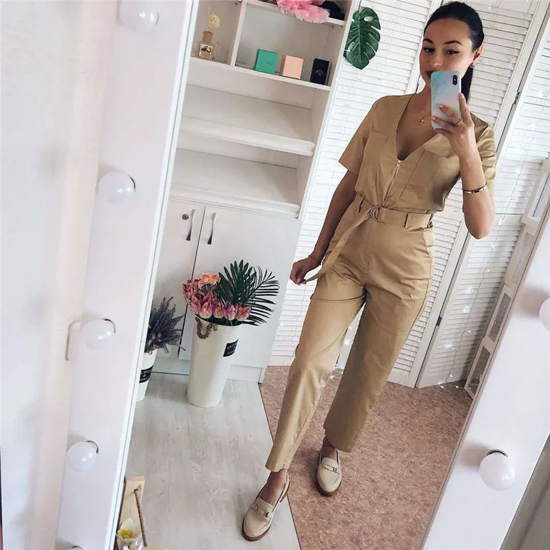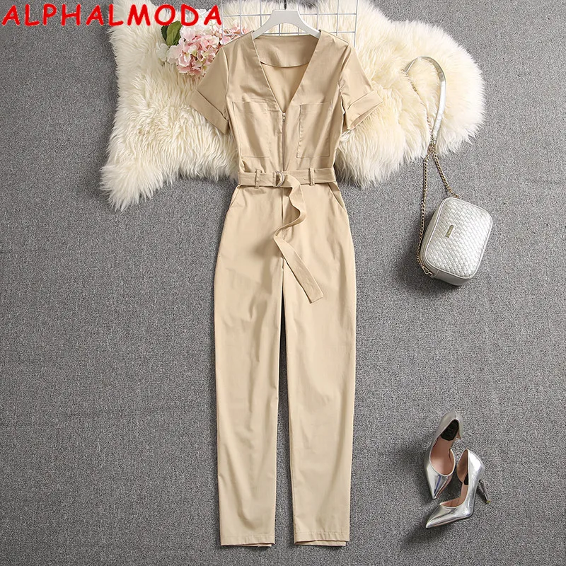 Женский комбинезон ALPHALMODA, с коротким рукавом, на молнии, с карманами, для повседневного ношения, для лета, 2020