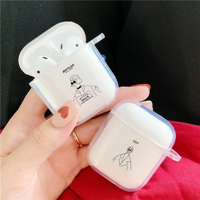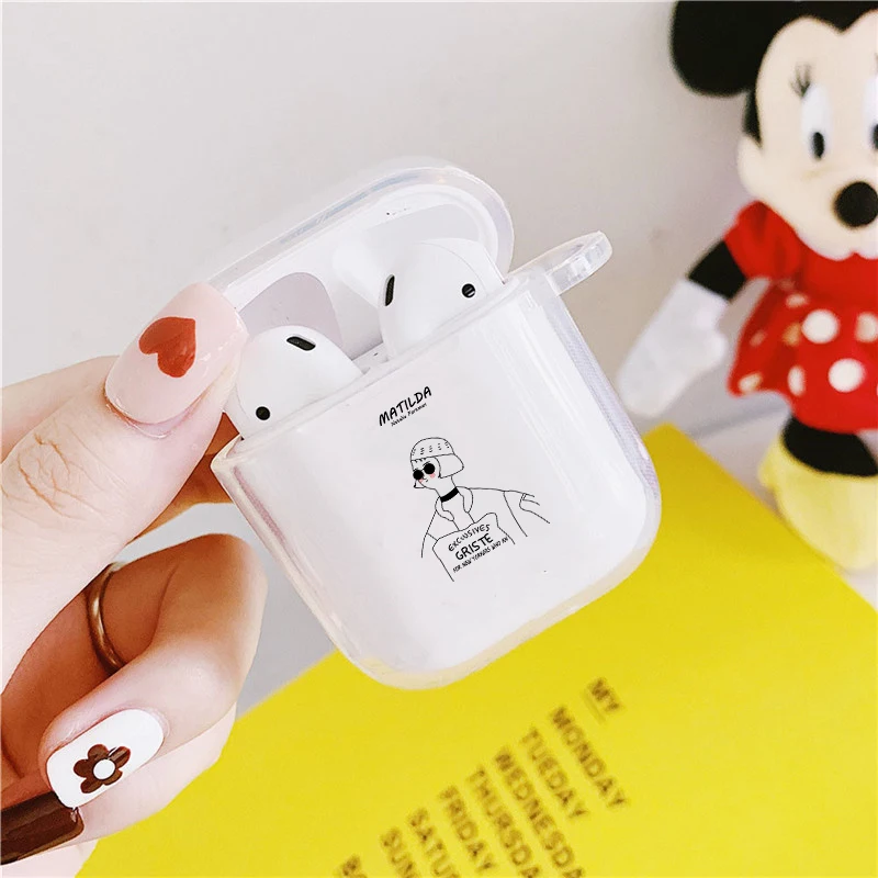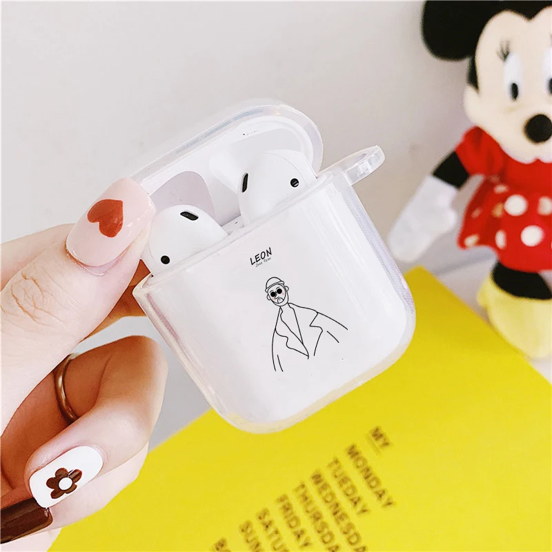 Милые Мультяшные наушники Mathilda Leon, чехлы для Airpods 2 1, Мягкий защитный чехол, прозрачные беспроводные наушники, чехол, коробка