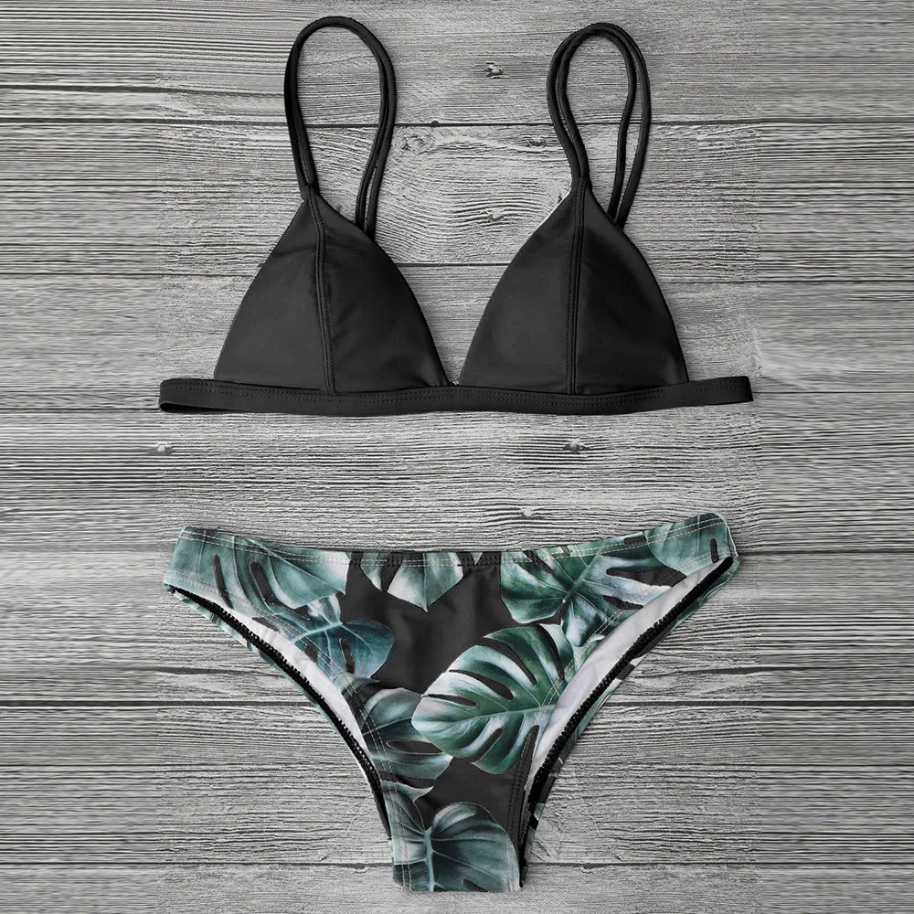 Бикини 2021, женский купальник с принтом листьев, комплект бикини с принтом листьев, пуш-ап, сексуальный купальник, пляжная одежда, монокини