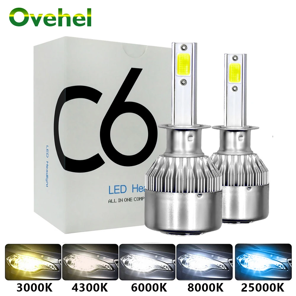 Светодиодные фары головного света OVEHEL Hulbs H7 светодиодный C6 H1 H3 Автомобильные фары H4 880 H11 HB3 9005 9006 H13 3000k 6000K 72W 12V 8000LM Автомобильные фары