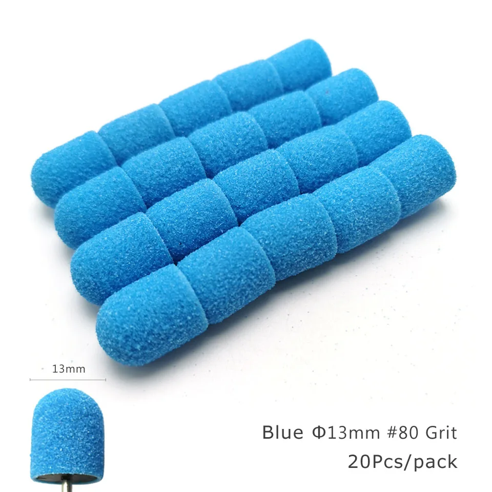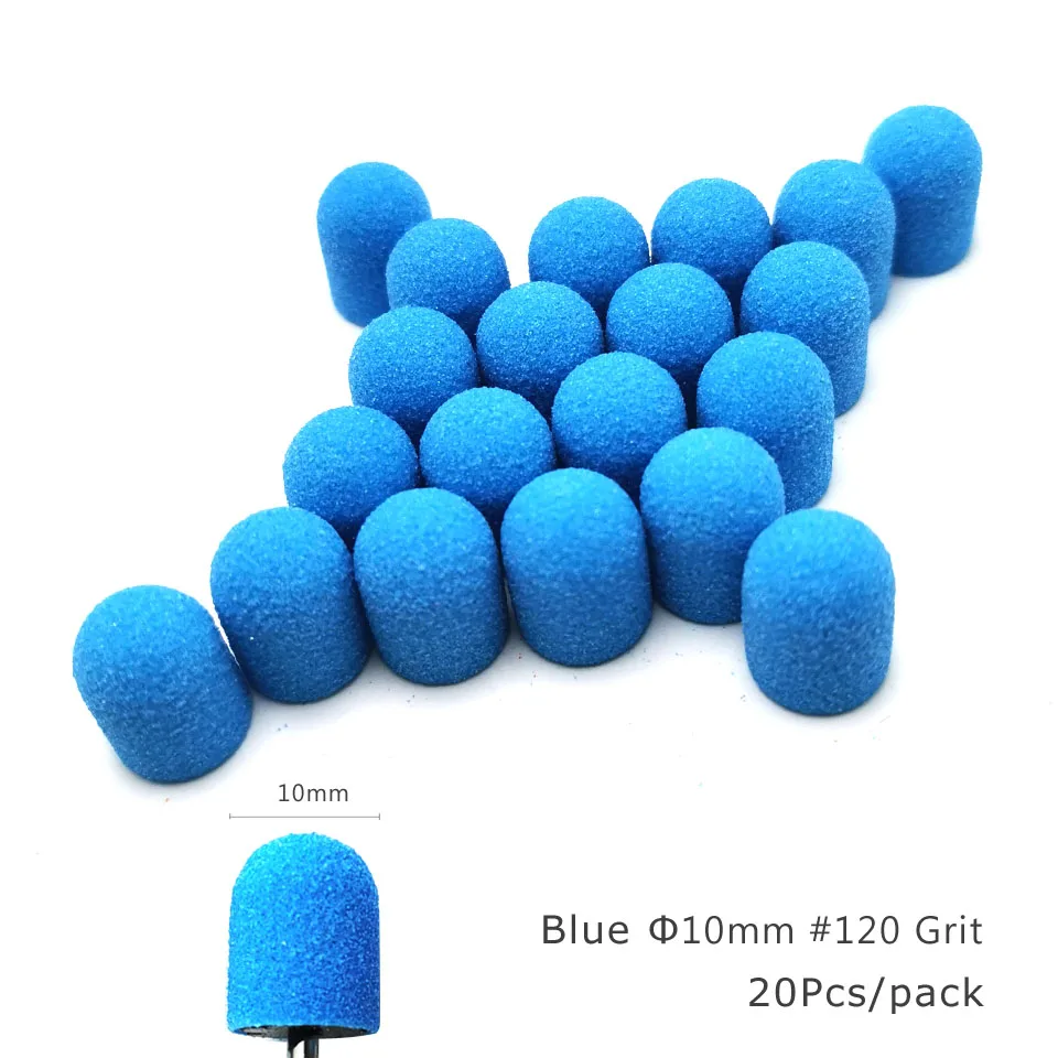 Набор шлифовальных колпачков HYTOOS, 20 шт., синяя пластиковая основа, с насадками для полировки и педикюра, аксессуары для сверл, инструмент для кутикулы и мозолей ног
