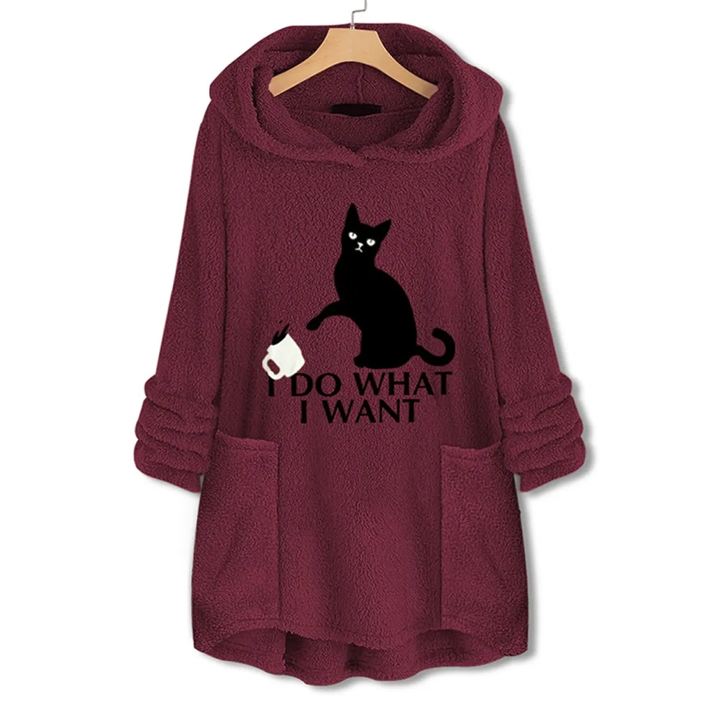 Женская толстовка с капюшоном 38 #, размер d, флисовая толстовка с капюшоном вышитый милый кот, размер размера плюс, свитшот с карманами, женские пуловеры, зимние джемперы