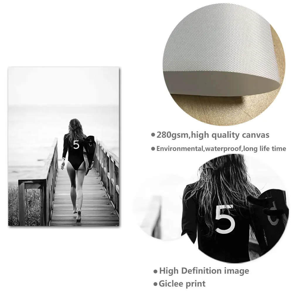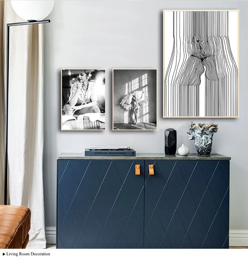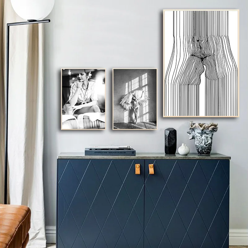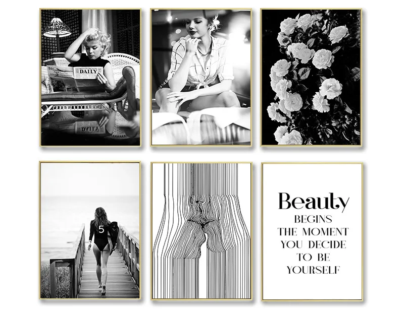 Сексуальный женский модный постер, черно-белый холст с принтом, нас...