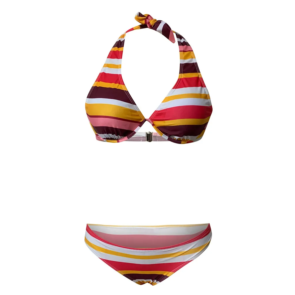 Бикини женское, 2021 г., Разноцветные полосатые бикини с эффектом пуш-ап, комплект из двух частей, купальники, бикини, монокини, бразильское бикини
