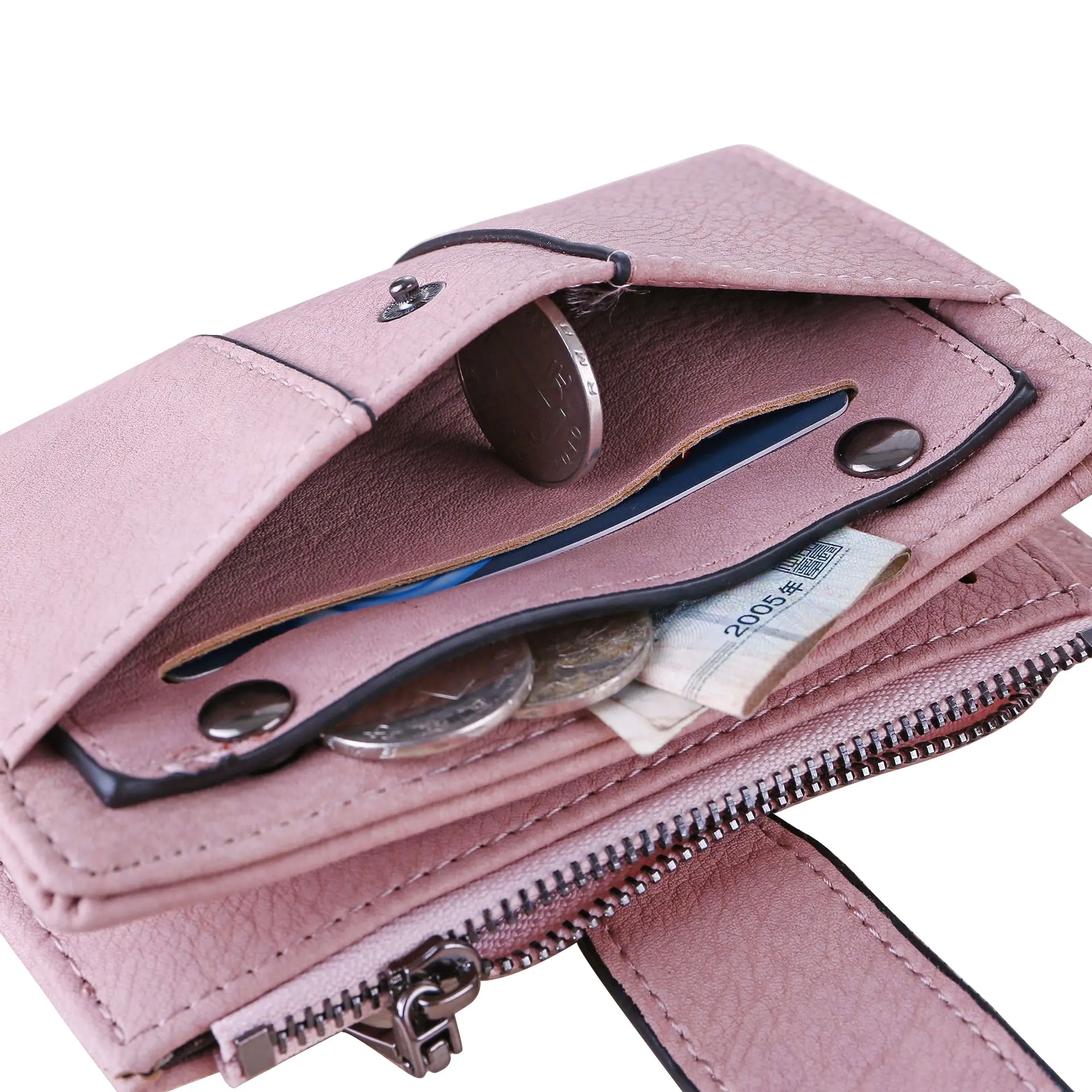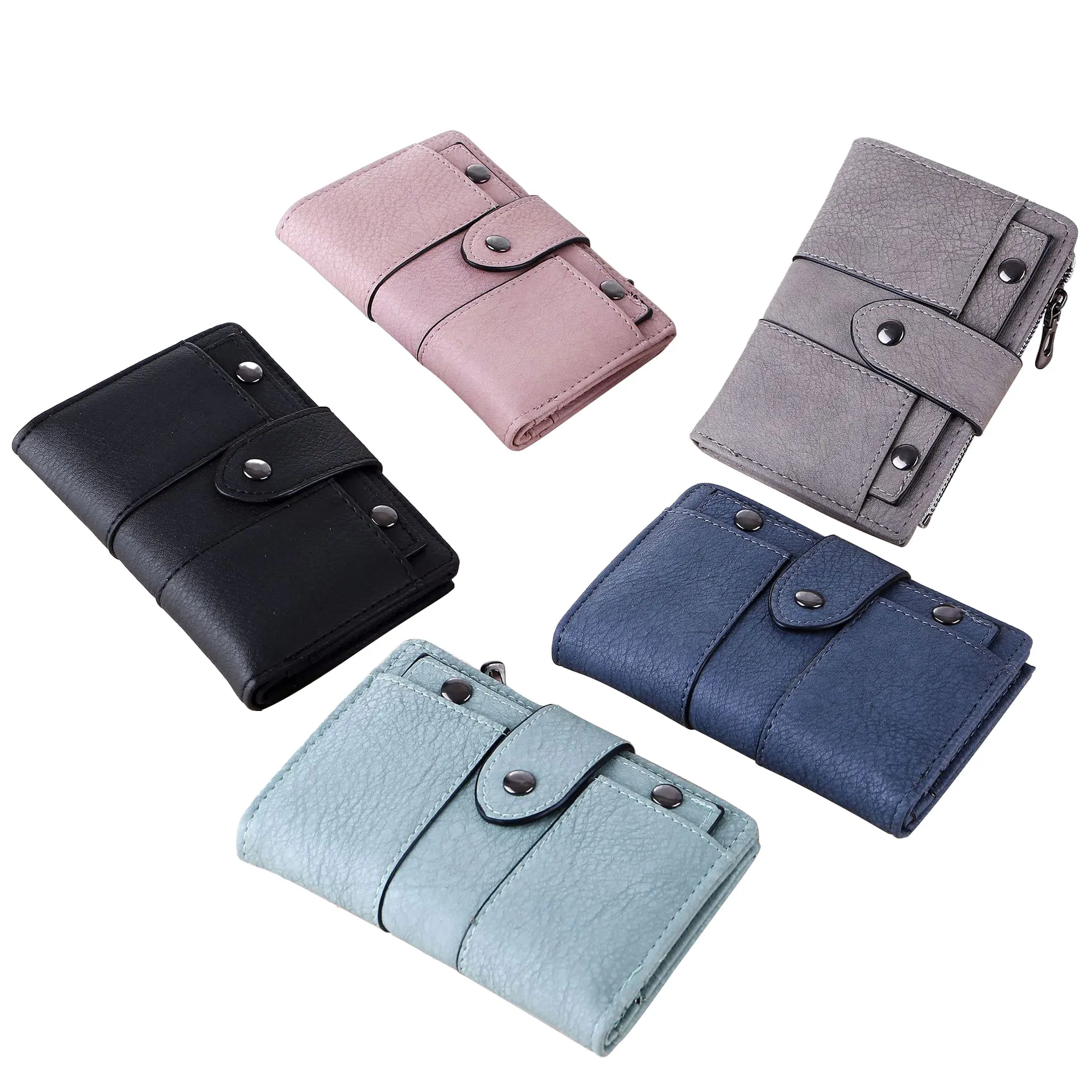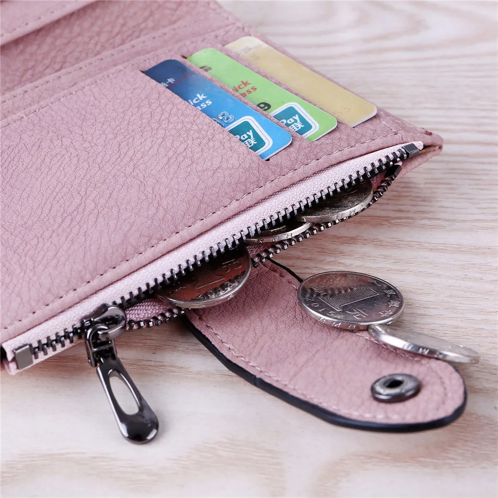Новый Модный женский короткий маленький кошелек для денег, кошелек из искусственной кожи, Складные держатели для монет и карт, черный, серый, розовый, зеленый