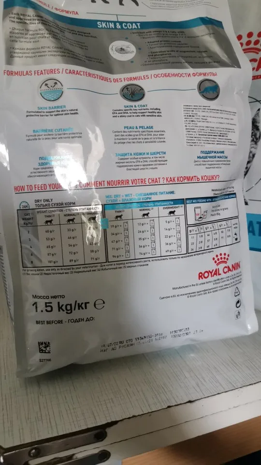 Продукт также подходит для некастрированных / нестерилизованных котов и кошек с повышенной чувствительностью кожи и шерсти