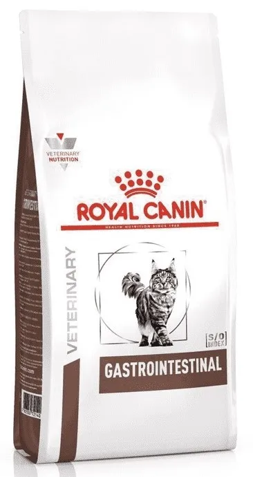 Royal Canin Gastro Intestinal - диета для кошек при нарушении пищеварения.Показания:Острая и хроническая диарея.Хроническое воспаление кишечника.Плохая переваримость и абсорбция питательных веществ.Пролиферация бактерий в тонком кишечнике.Колит.Гастрит.Заболевания печени (кроме печеночной энцефалопатии).Восстановительный период после болезни.Анорексия.Противопоказания:Печеночная энцефалопатия.Лимфангиэктазия – экссудативная энтеропатия.Панкреатит.