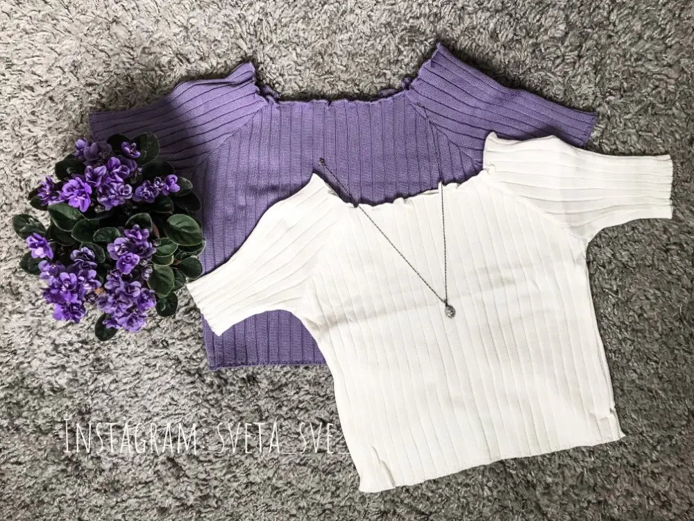 топ как на картинке, цвет яркий, не полинял. красиво выглядит, фото немного не передает оттенок, он лавандовый. ношу размер 44, подошёл хорошо