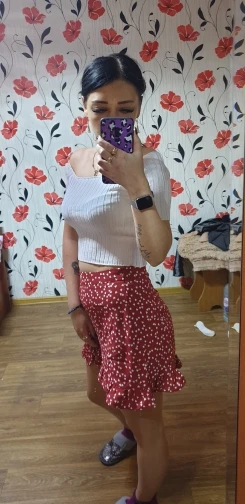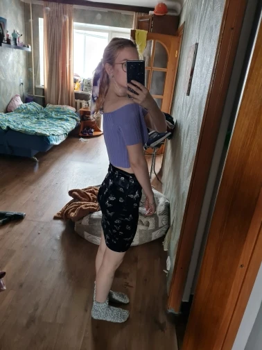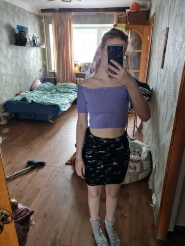За свою цену прикольная футболочка ) Носить с джинсами или юбкой с высокой талией) У меня даже нитки нигде не торчали)
