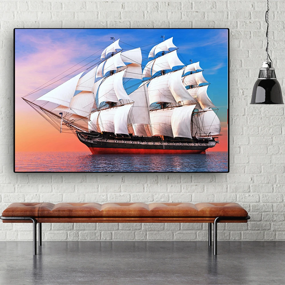 5D алмазная картина парусник Сделай Сам Алмазная вышивка морская поверхность вышивка крестиком Мозаика из страз алмазное искусство домашний декор