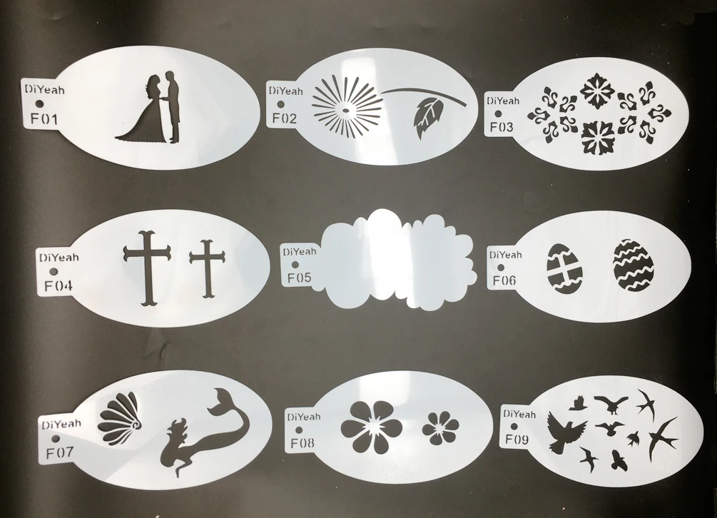 Шаблон для боди-арта Face трафареты для картин Pro, в горошек, рыбья чешуя, Леопардовый принт, кирпичи, ангел, радуга, Прасс, макияж, 9 шт., 14*7,5 см